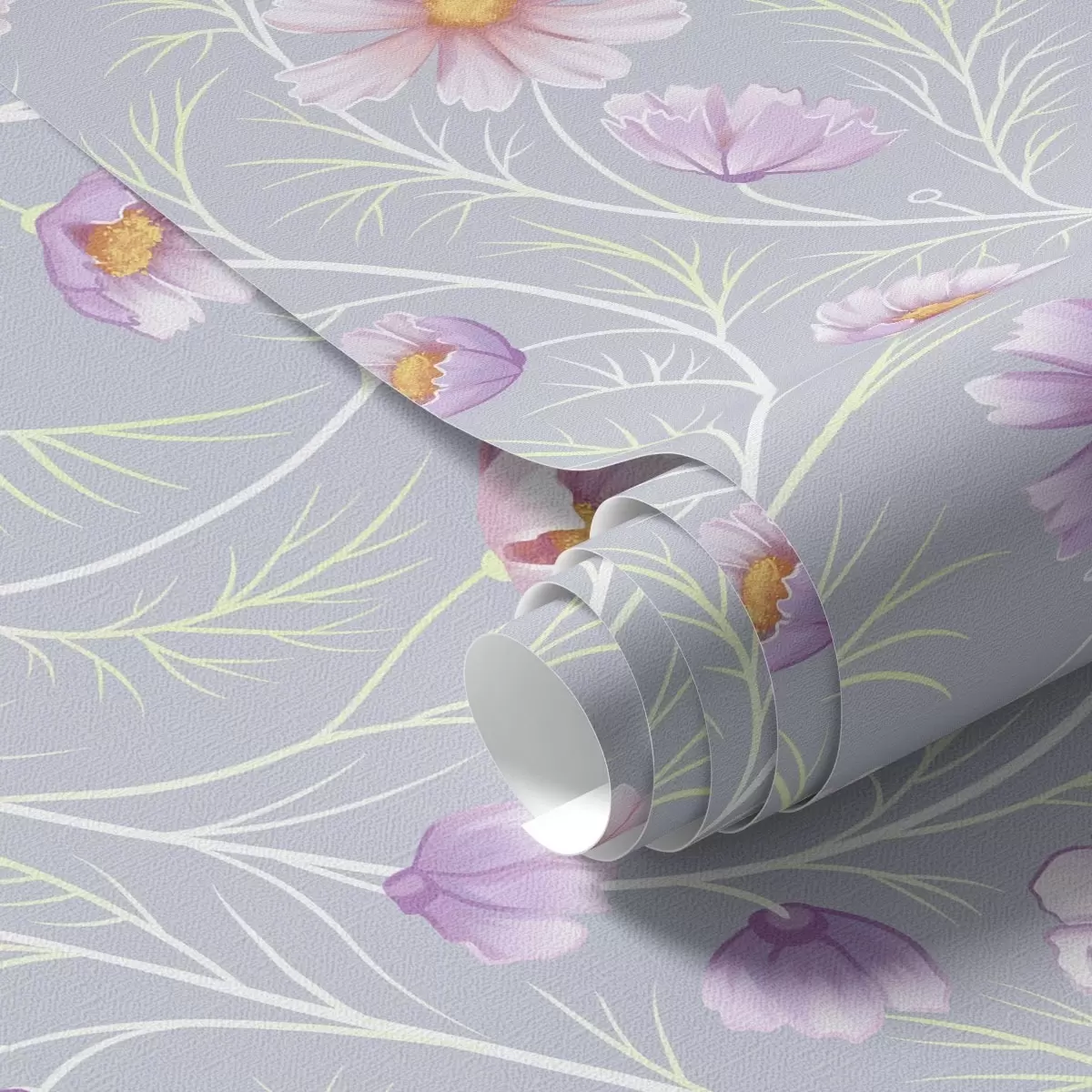 Ταπετσαρία Ροζ κοσμοί και λεπτοί μίσχοι σε γκρι φόντο Nr. a00791