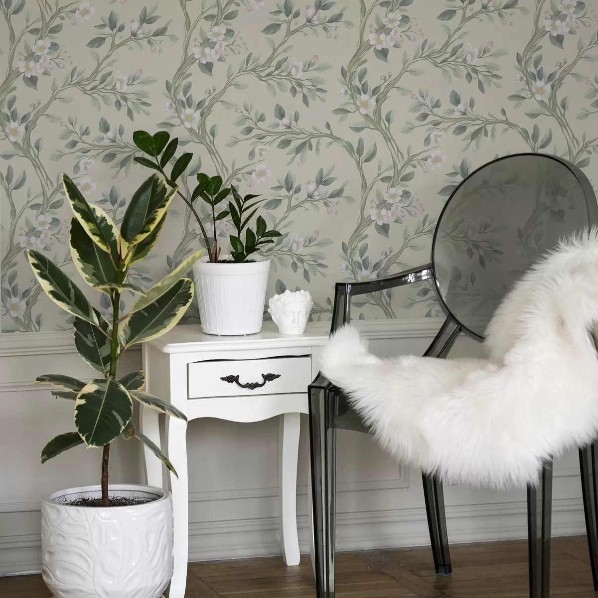 Ταπετσαρία Λεπτά ανθισμένα κλαδιά σε κρεμ φόντο, παστέλ Nr. a00793
