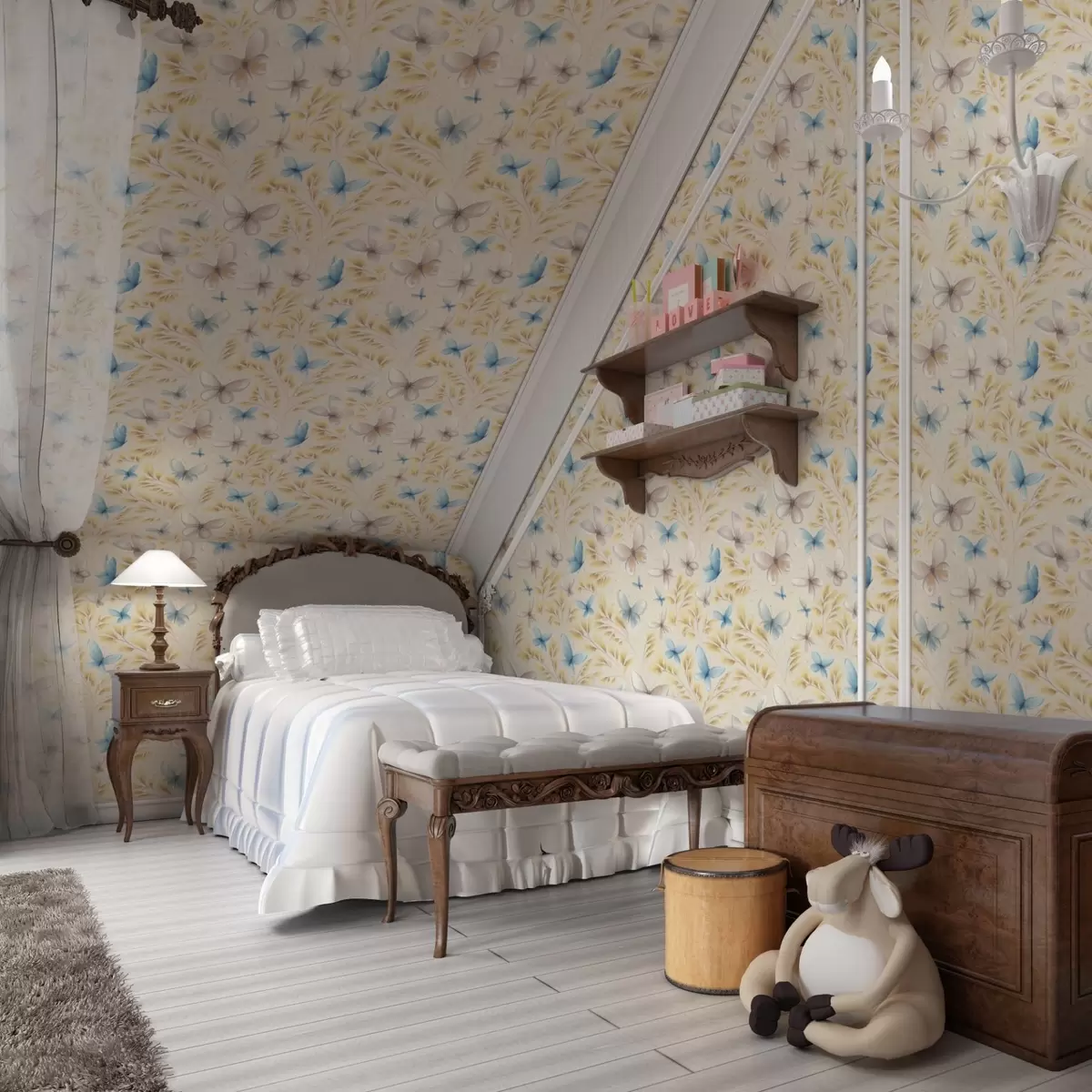 Ταπετσαρία Ελαφριές πεταλούδες ανάμεσα σε κίτρινα φύλλα σε ανοιχτόχρωμο φόντο Nr. a00795