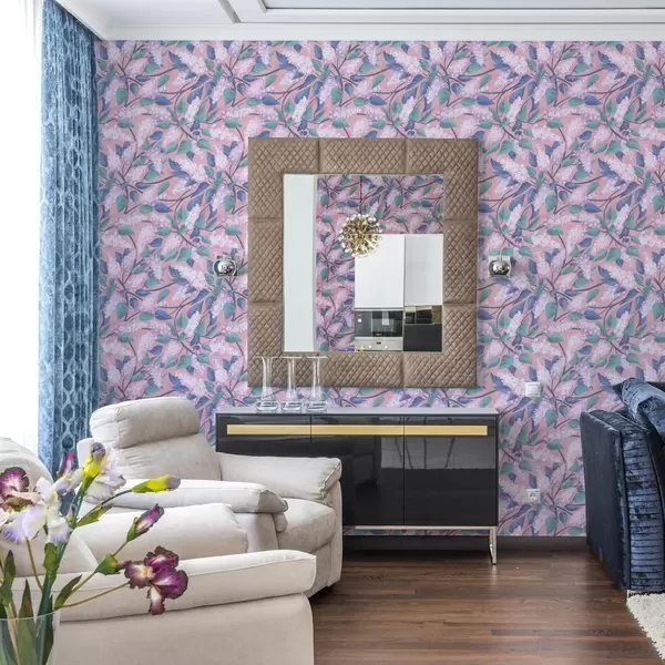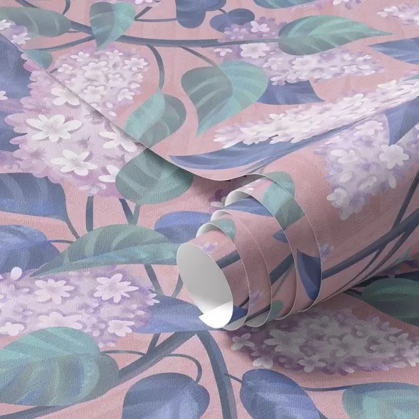 Ταπετσαρία Λεπτά λιλά λουλούδια σε ροζ φόντο, ανοιξιάτικη διάθεση Nr. a00797