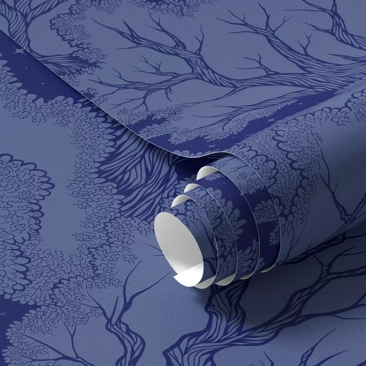 Ταπετσαρία Σιλουέτες δέντρων κάτω από ένα έναστρο ουρανό σε αποχρώσεις του μπλε Nr. a00798