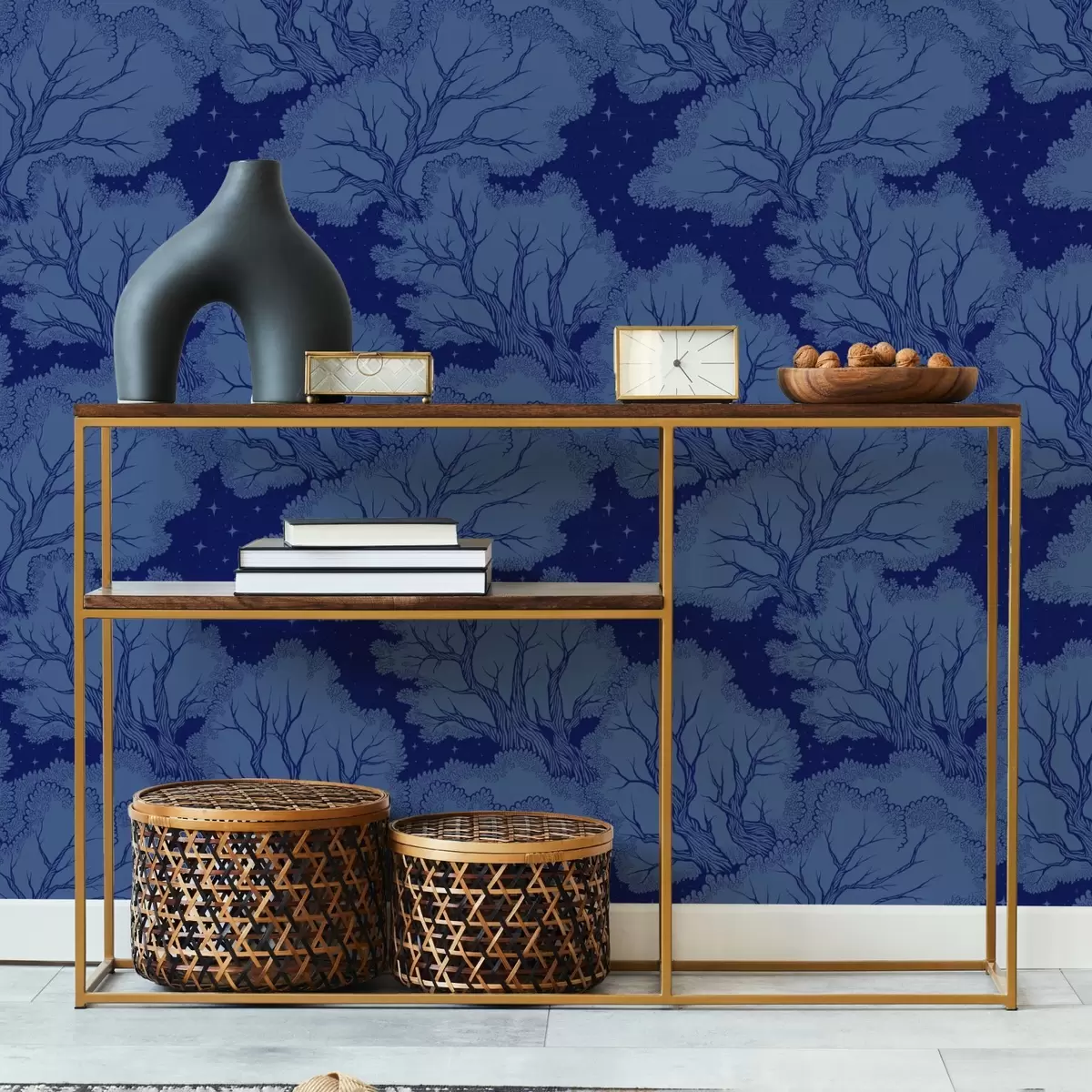 Ταπετσαρία Σιλουέτες δέντρων κάτω από ένα έναστρο ουρανό σε αποχρώσεις του μπλε Nr. a00798