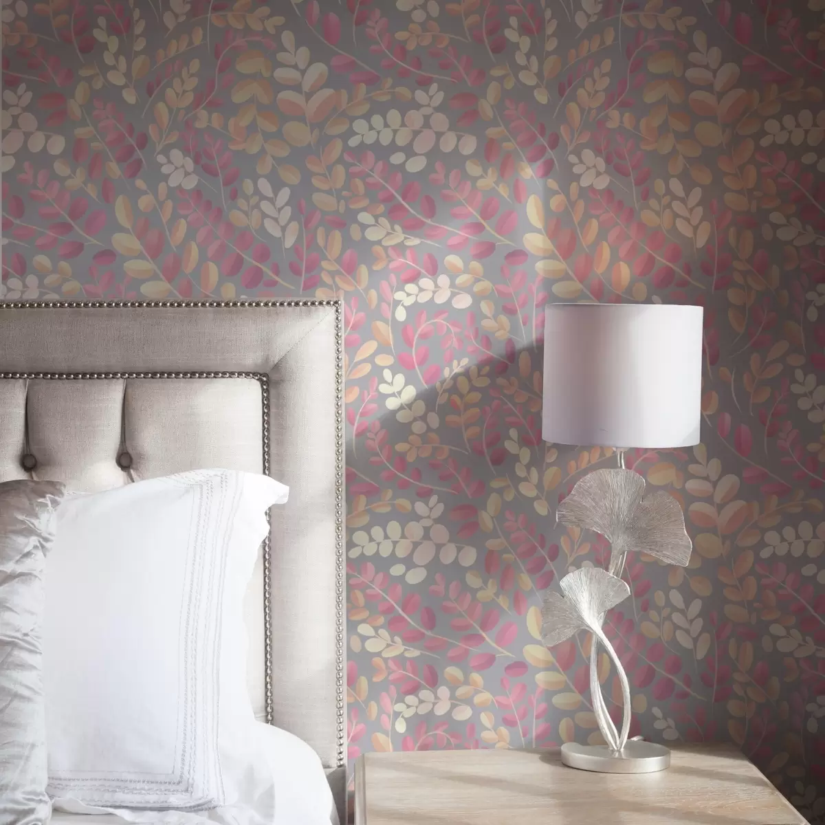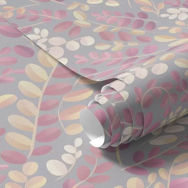 Ταπετσαρία Παστέλ κλαδιά με ροζ-ροδακινί φύλλωμα σε γκρι φόντο Nr. a00799v1