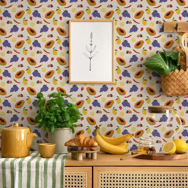 Ταπετσαρία Παπάγια, σταφύλια και λεμόνια — ένα φωτεινό μείγμα φρούτων Nr. a00803