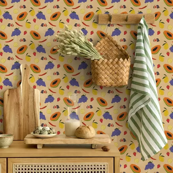 Ταπετσαρία Παπάγια, εσπεριδοειδή και μούρα σε πλούσιο, ζεστό φόντο Nr. a00803v1
