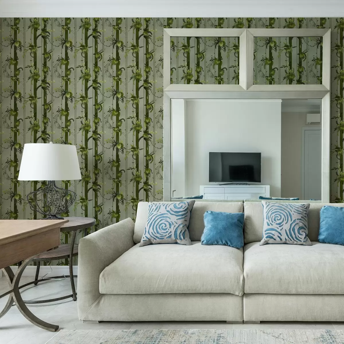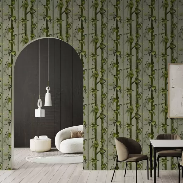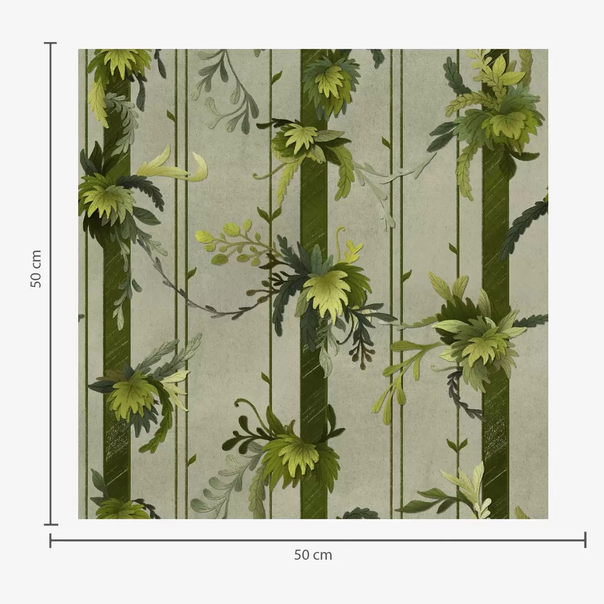 Ταπετσαρία Πράσινα φύλλα σε κάθετες ρίγες σε γκρι φόντο Nr. a00807v1