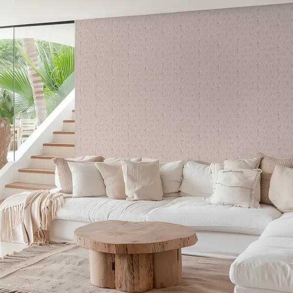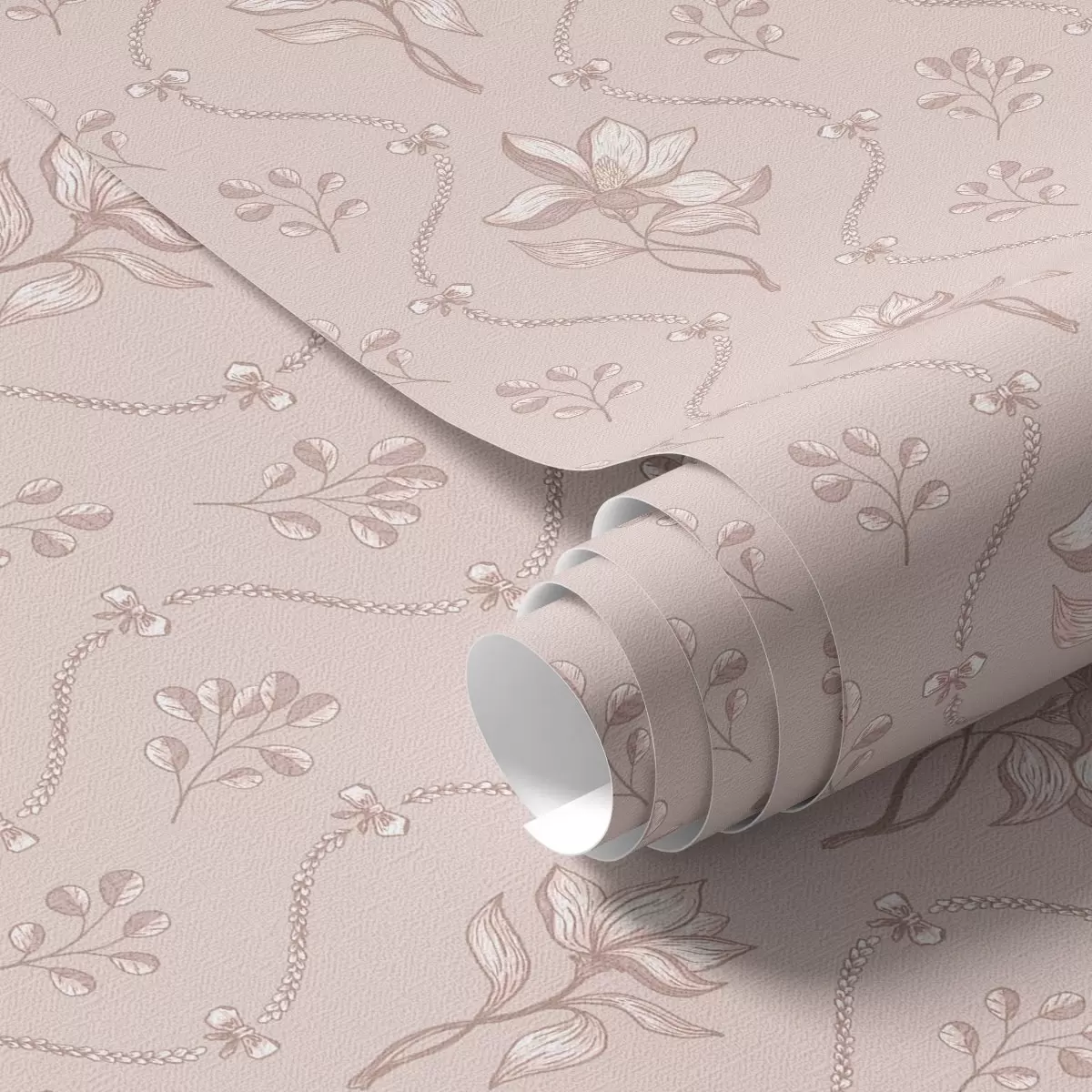 Ταπετσαρία Μικρά λουλούδια και κορδέλες σε απαλούς ροζ και μπεζ τόνους Nr. a00808