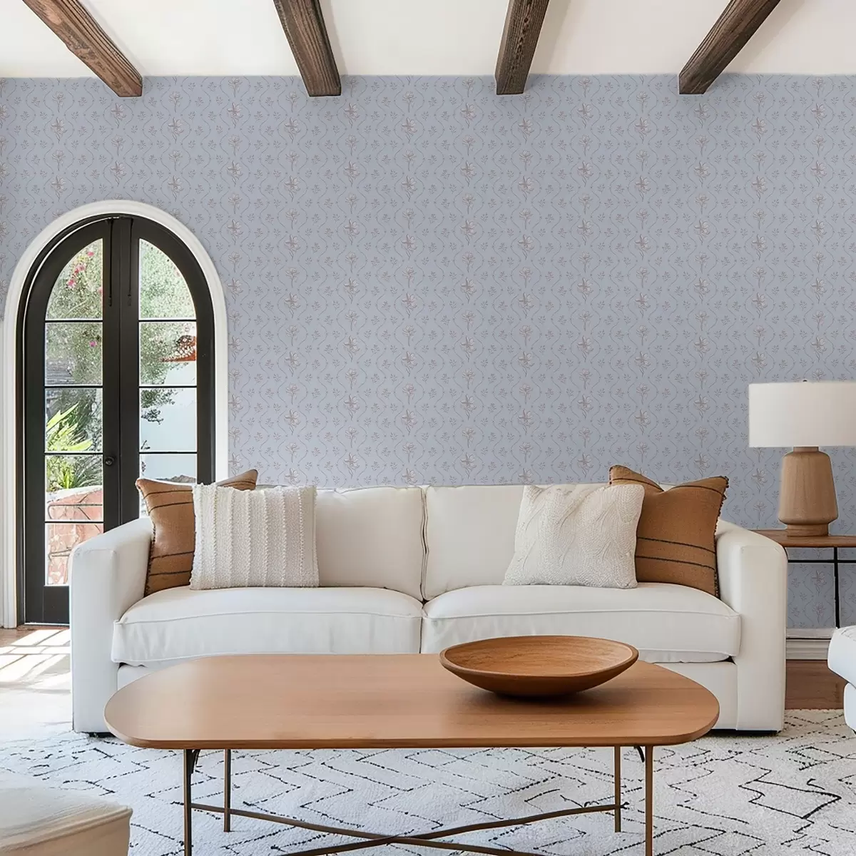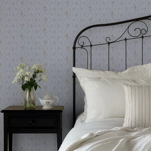 Ταπετσαρία Μικρά λουλούδια και κορδέλες σε απαλούς μπλε τόνους Nr. a00808v1