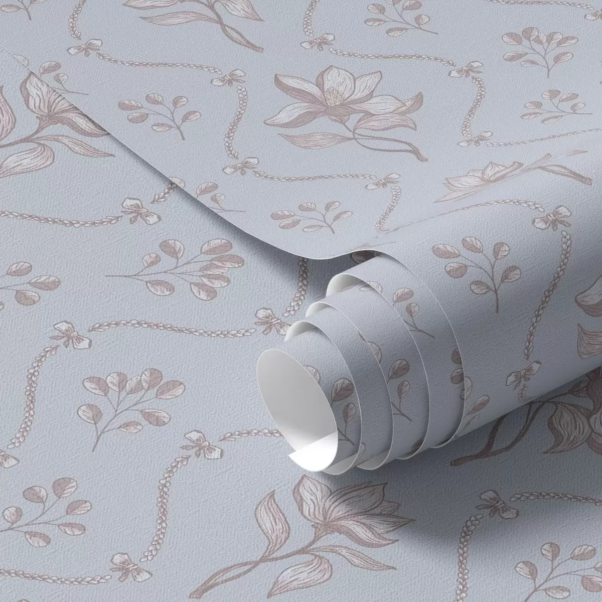 Ταπετσαρία Μικρά λουλούδια και κορδέλες σε απαλούς μπλε τόνους Nr. a00808v1