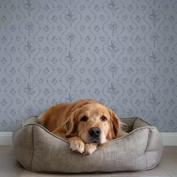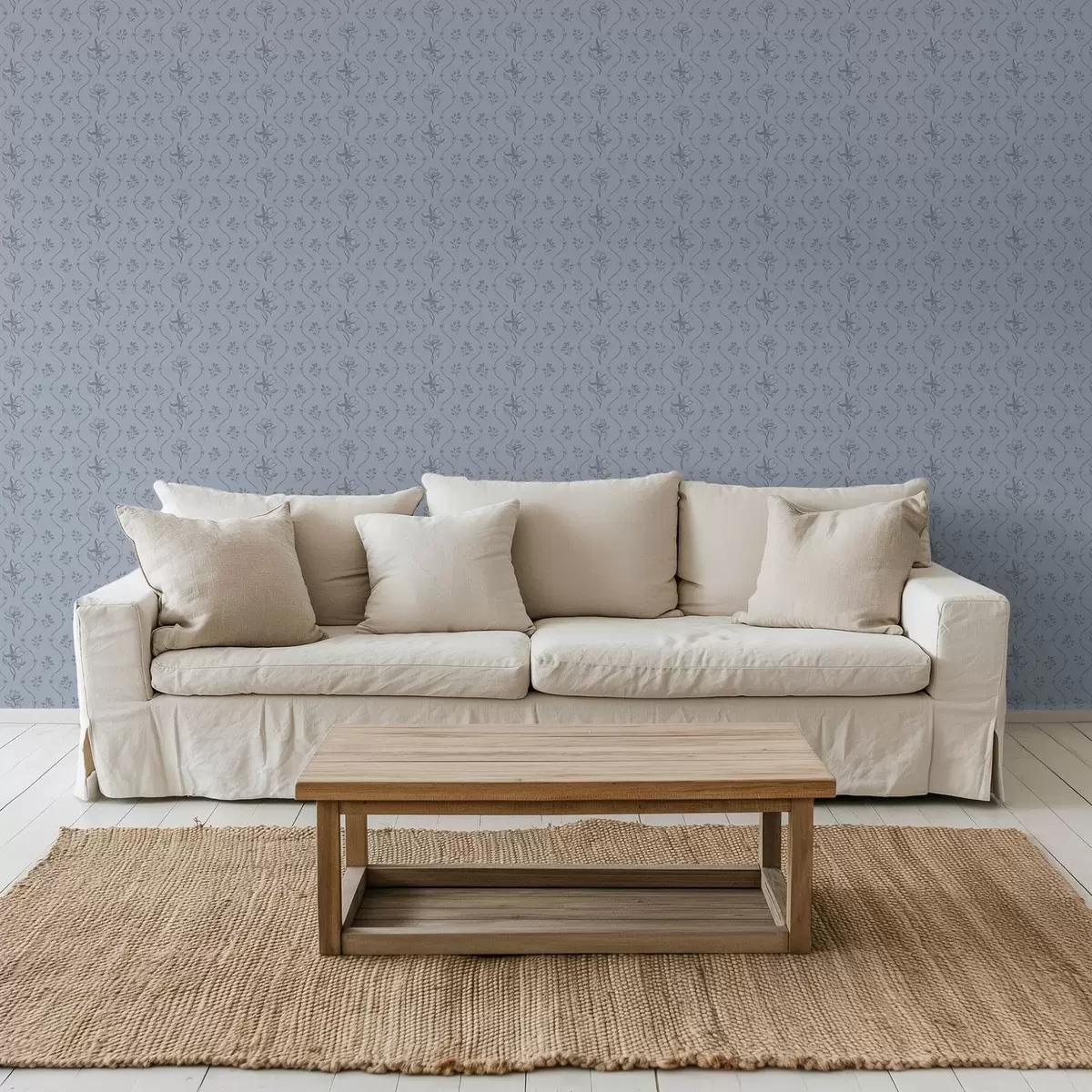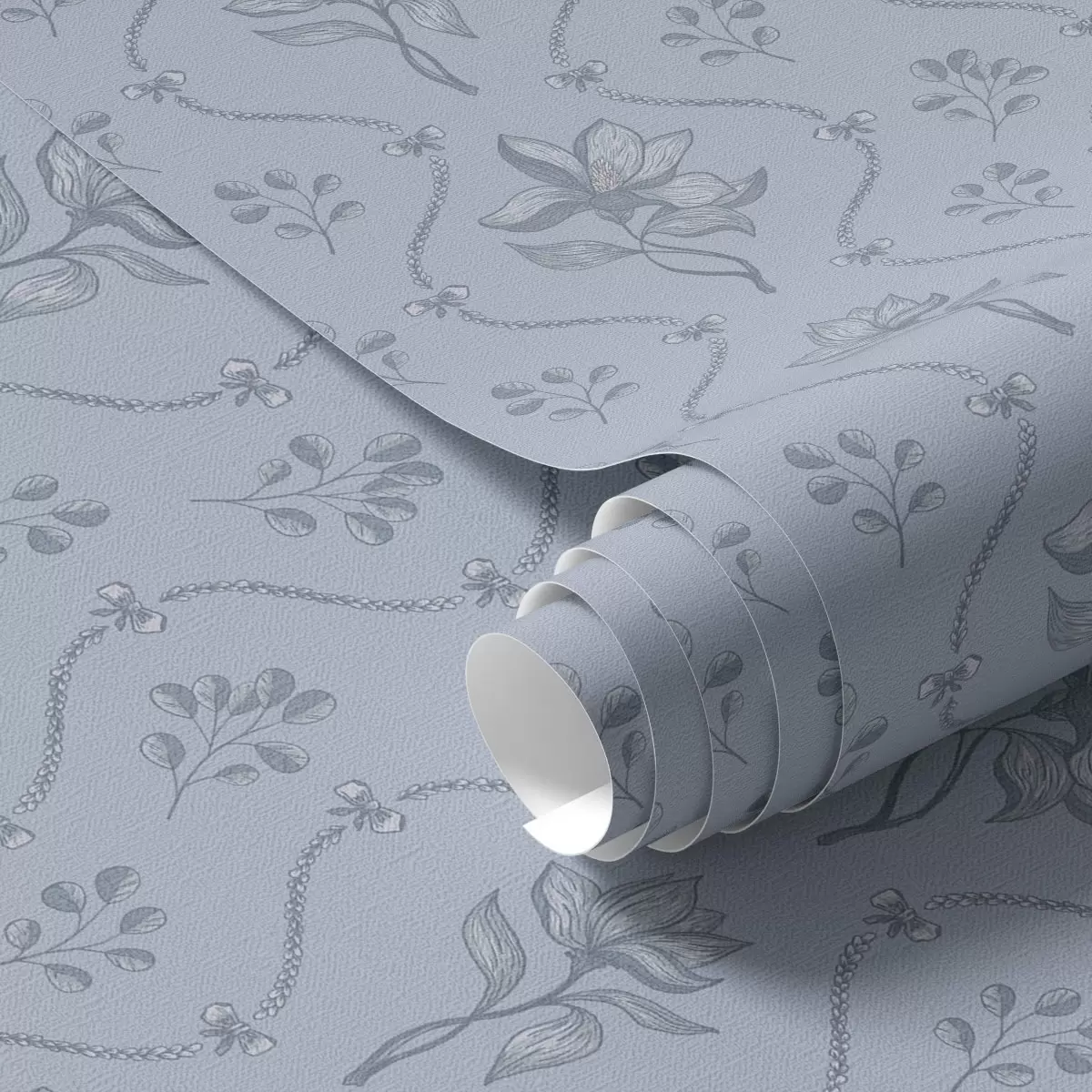 Ταπετσαρία Μικρά λουλούδια και κορδέλες σε γκρι-μπλε παλέτα Nr. a00808v2
