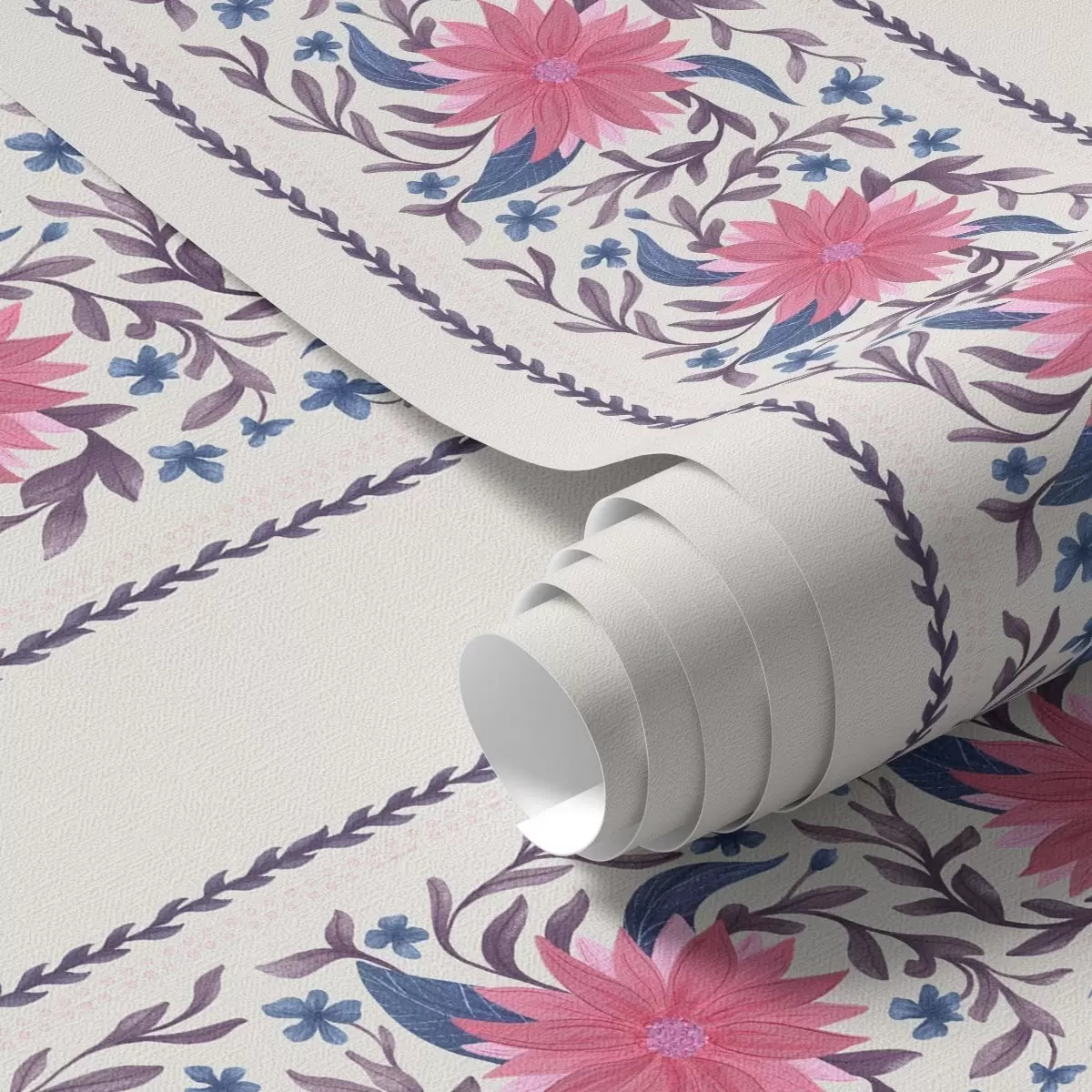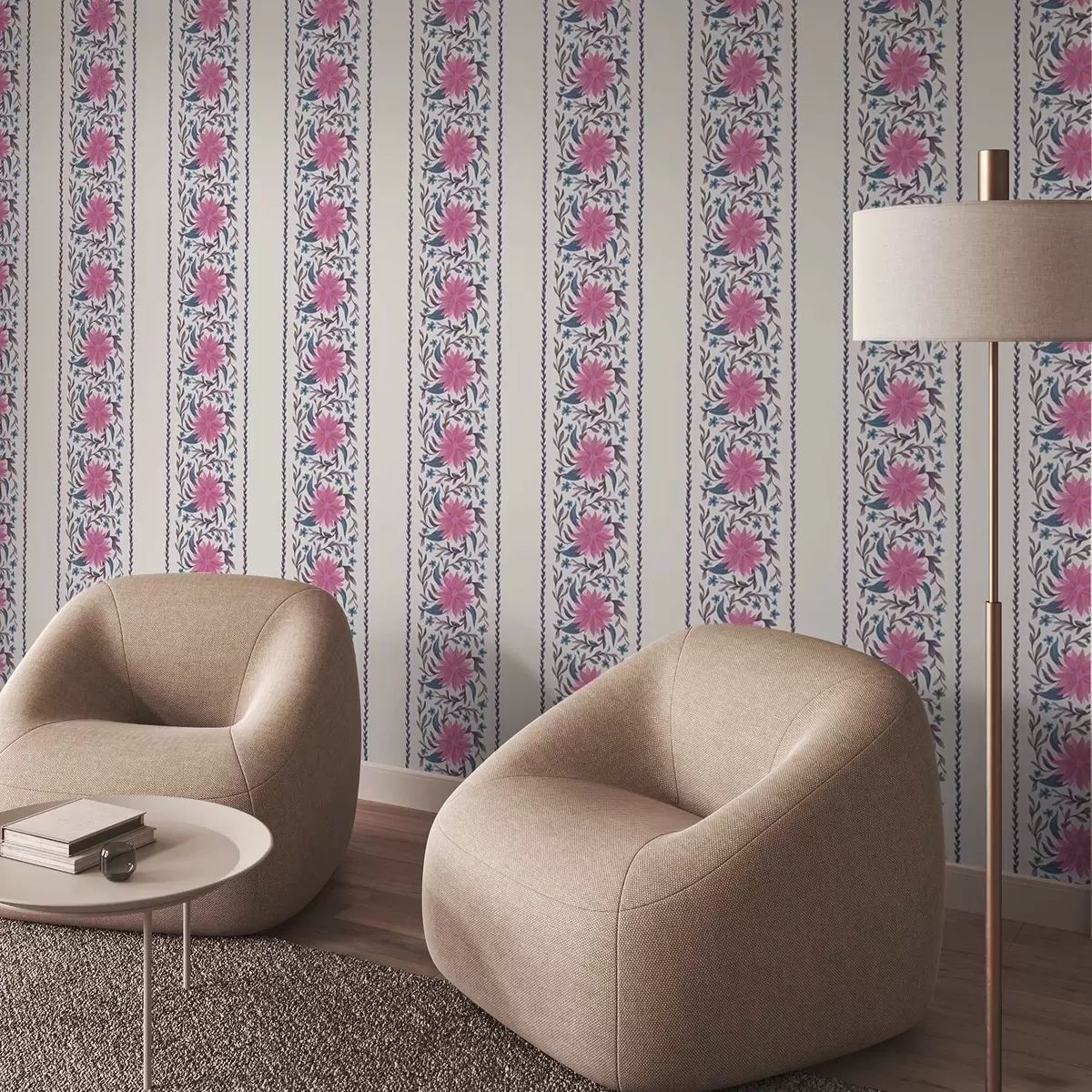 Ταπετσαρία Κάθετες λουλουδάτες ρίγες σε ροζ-μοβ αποχρώσεις Nr. a00810