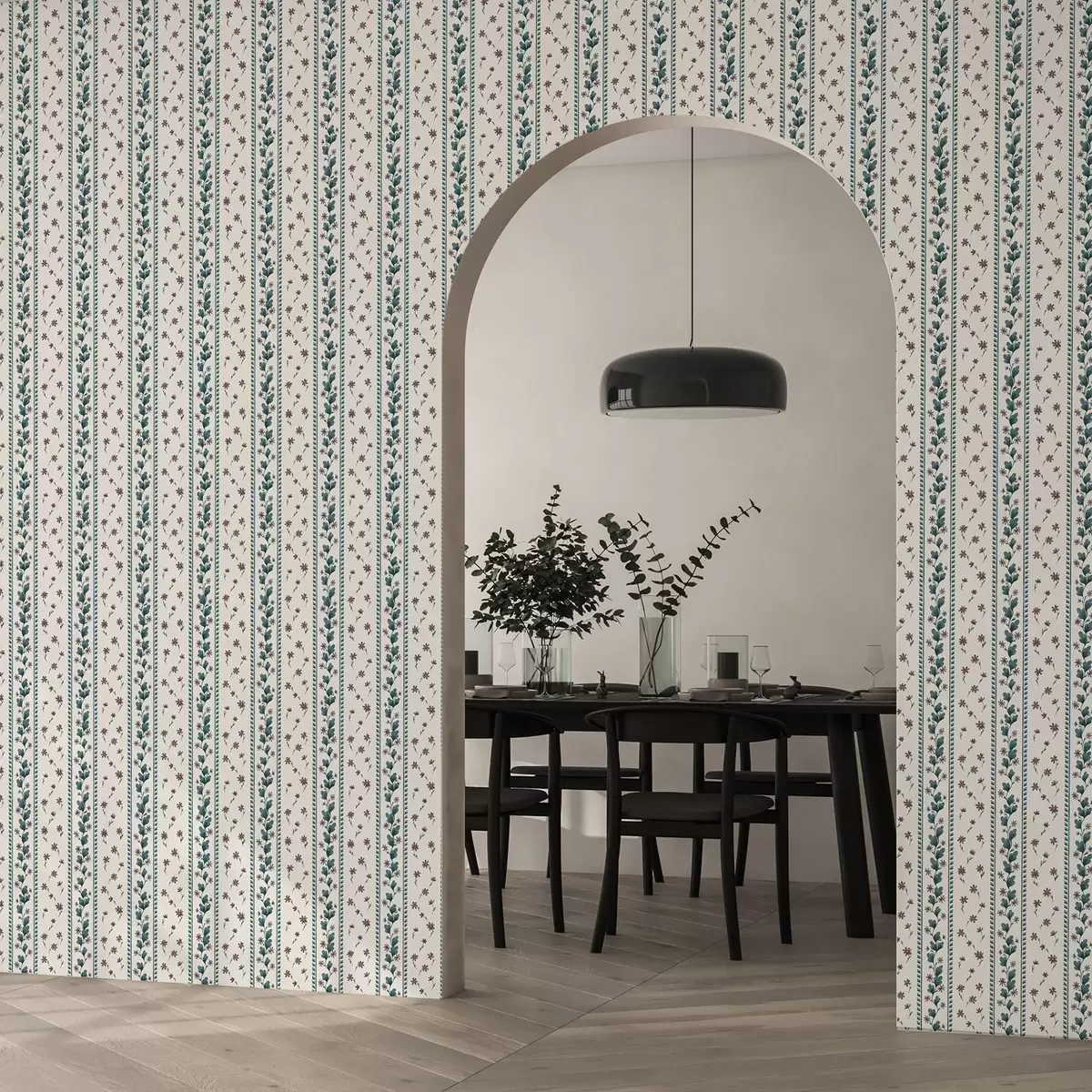 Ταπετσαρία Κάθετες λουλουδάτες ρίγες σε μπλε-καφέ αποχρώσεις Nr. a00811
