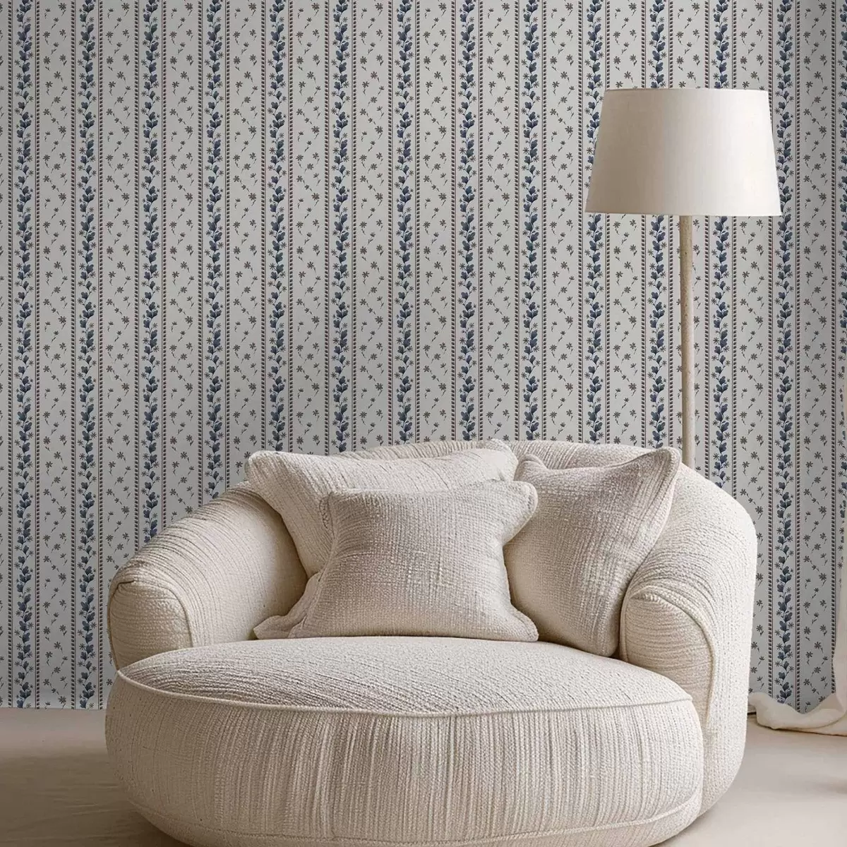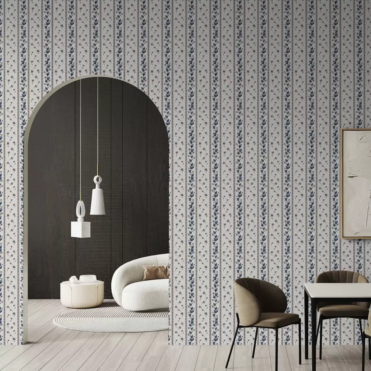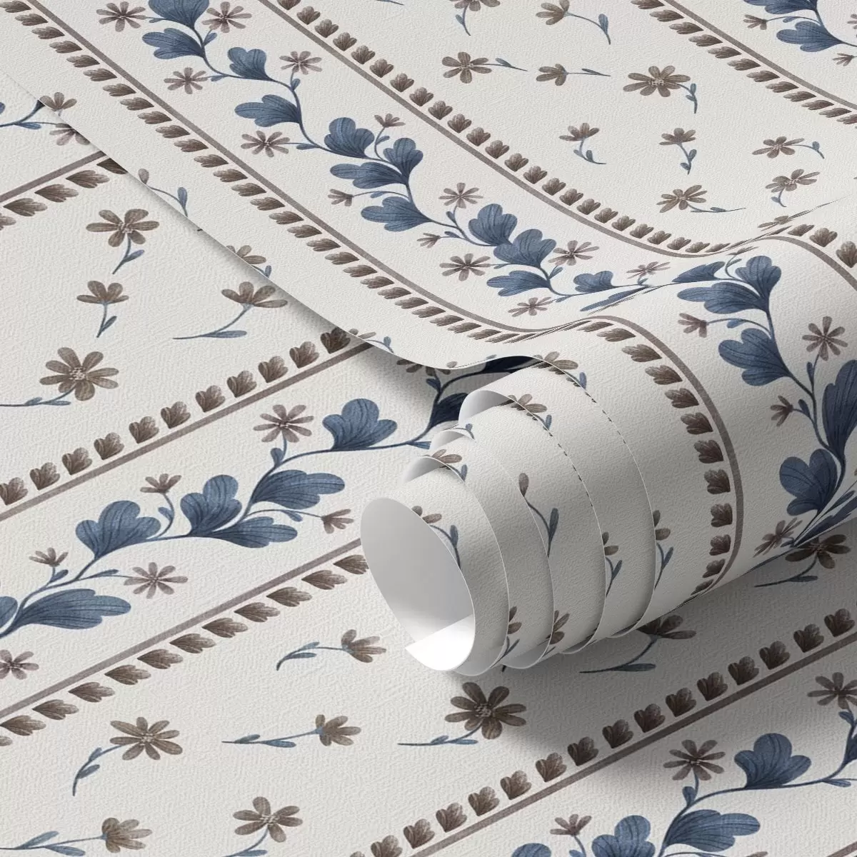 Ταπετσαρία Κάθετες λουλουδάτες ρίγες σε μπλε-καφέ αποχρώσεις Nr. a00811v2