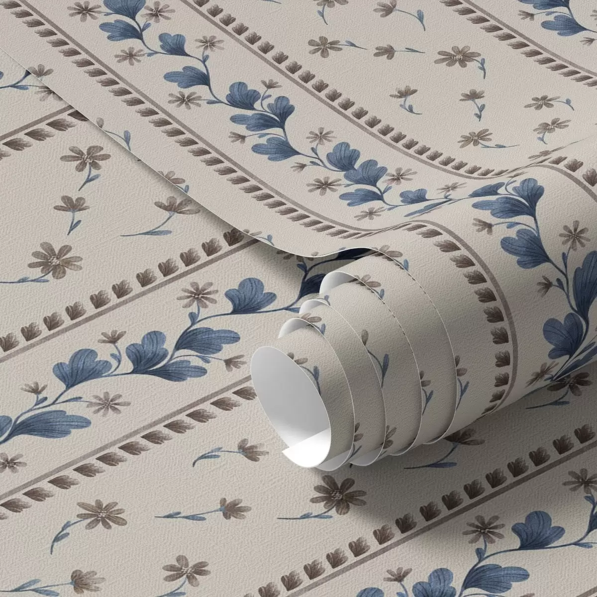 Ταπετσαρία Κάθετες λουλουδάτες ρίγες σε μπλε-καφέ αποχρώσεις Nr. a00811v3