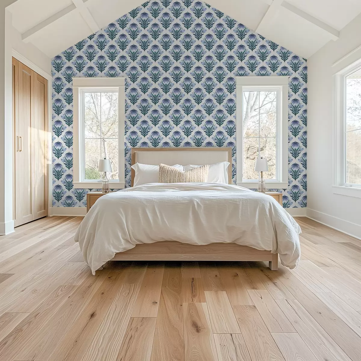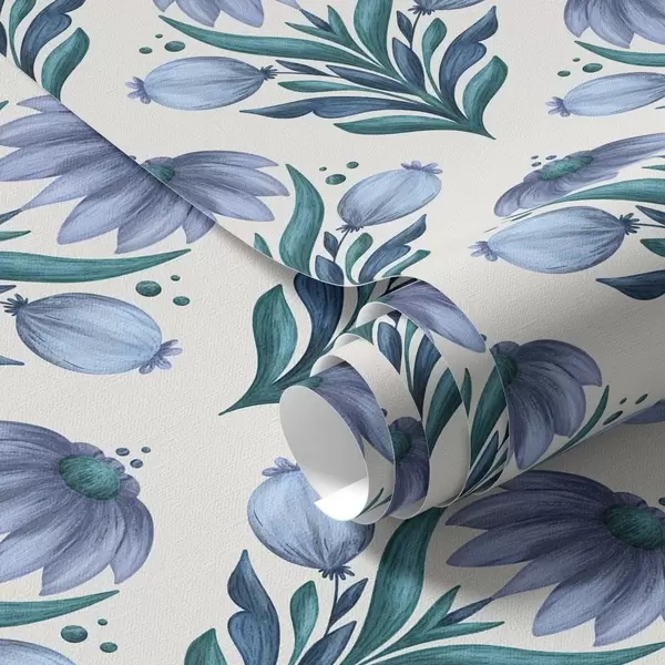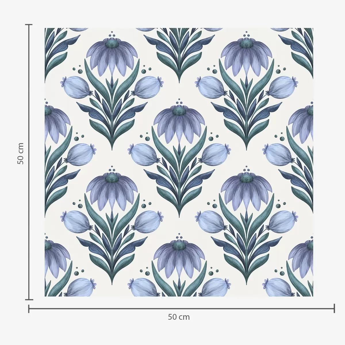 Ταπετσαρία Συμμετρικό φυτικό μοτίβο σε αποχρώσεις του μπλε και του λευκού Nr. a00812v2