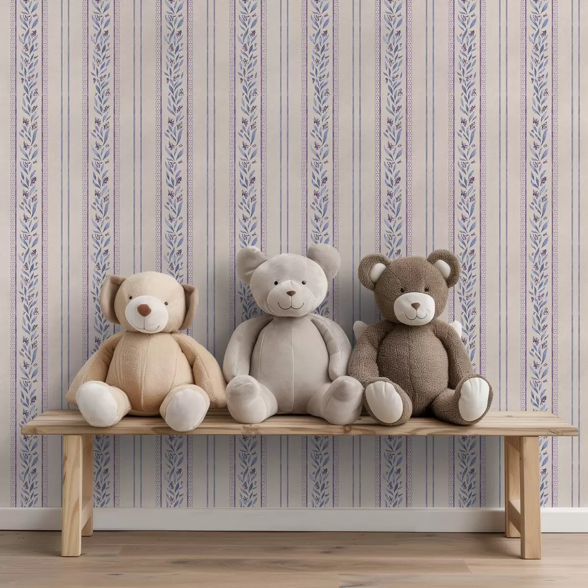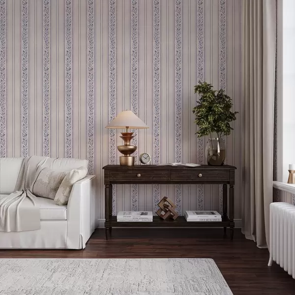 Ταπετσαρία Κάθετες ρίγες με λεβάντα βινιέτες, ζεστό μπεζ Nr. a00813