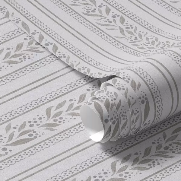 Ταπετσαρία Ρίγες με δαντέλα και κλαδιά σε δροσερό λευκό χρώμα Nr. a00814v1