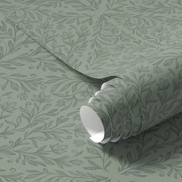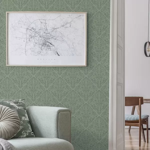 Ταπετσαρία Λεπτό βοτανικό δαμασκηνό σε απαλό πράσινο χρώμα Nr. a00815v1