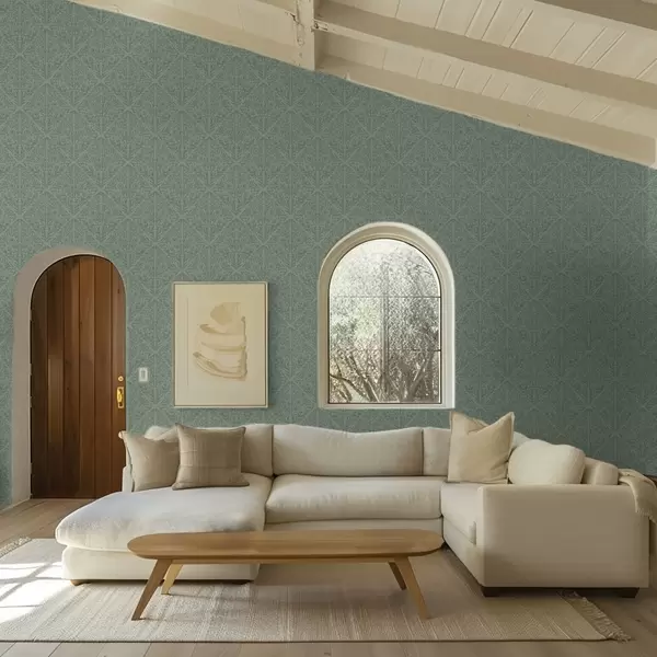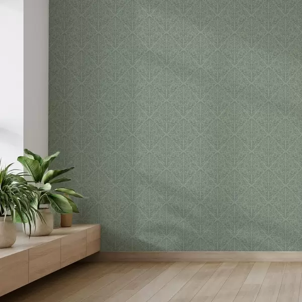 Ταπετσαρία Λεπτό βοτανικό δαμασκηνό σε απαλό πράσινο χρώμα Nr. a00815v1