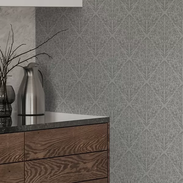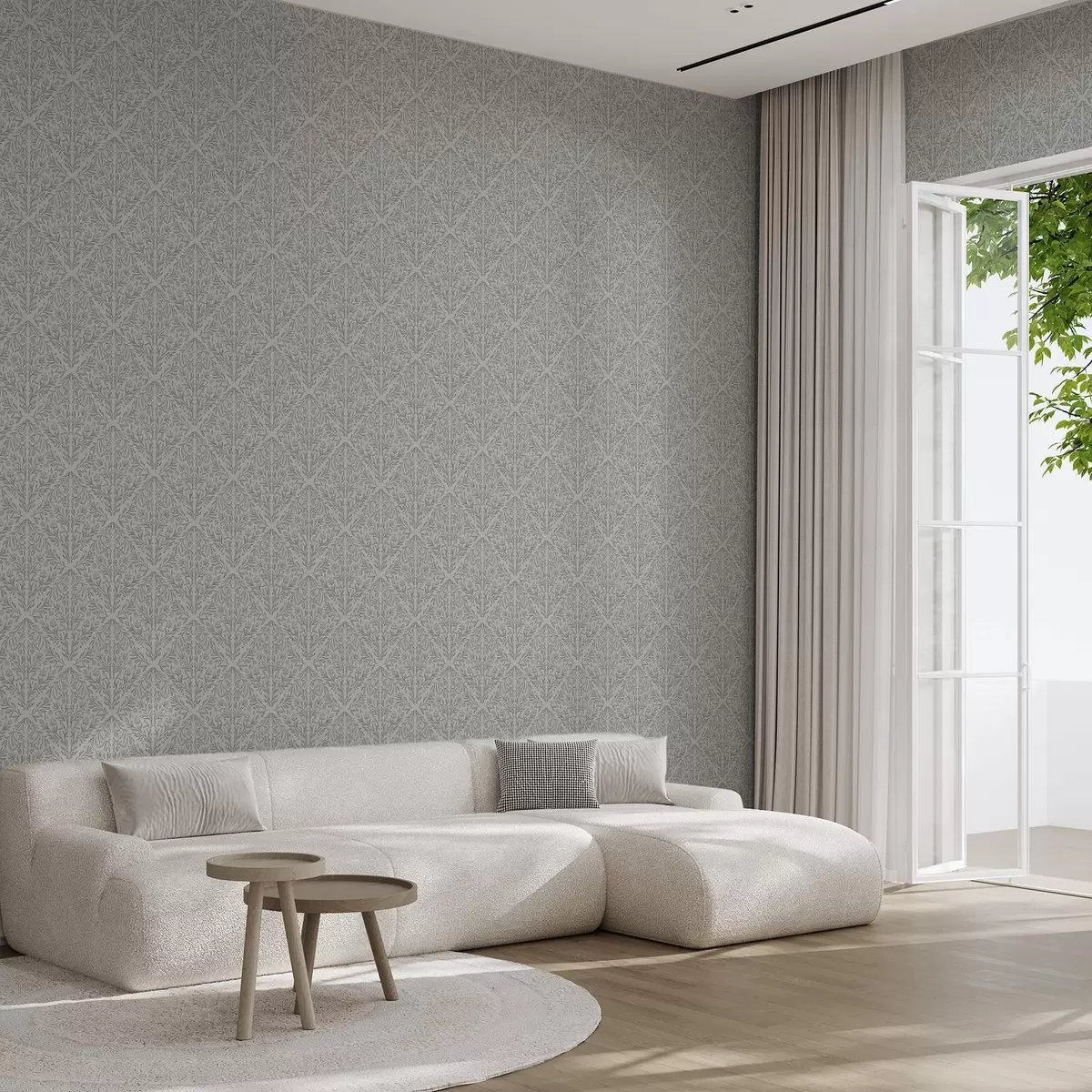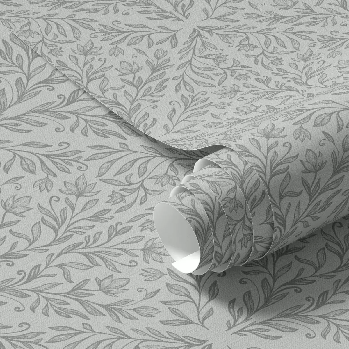 Ταπετσαρία Βοτανικό δαμασκηνό σε ανοιχτό γκρι χρώμα με απαλό περίγραμμα Nr. a00815v2