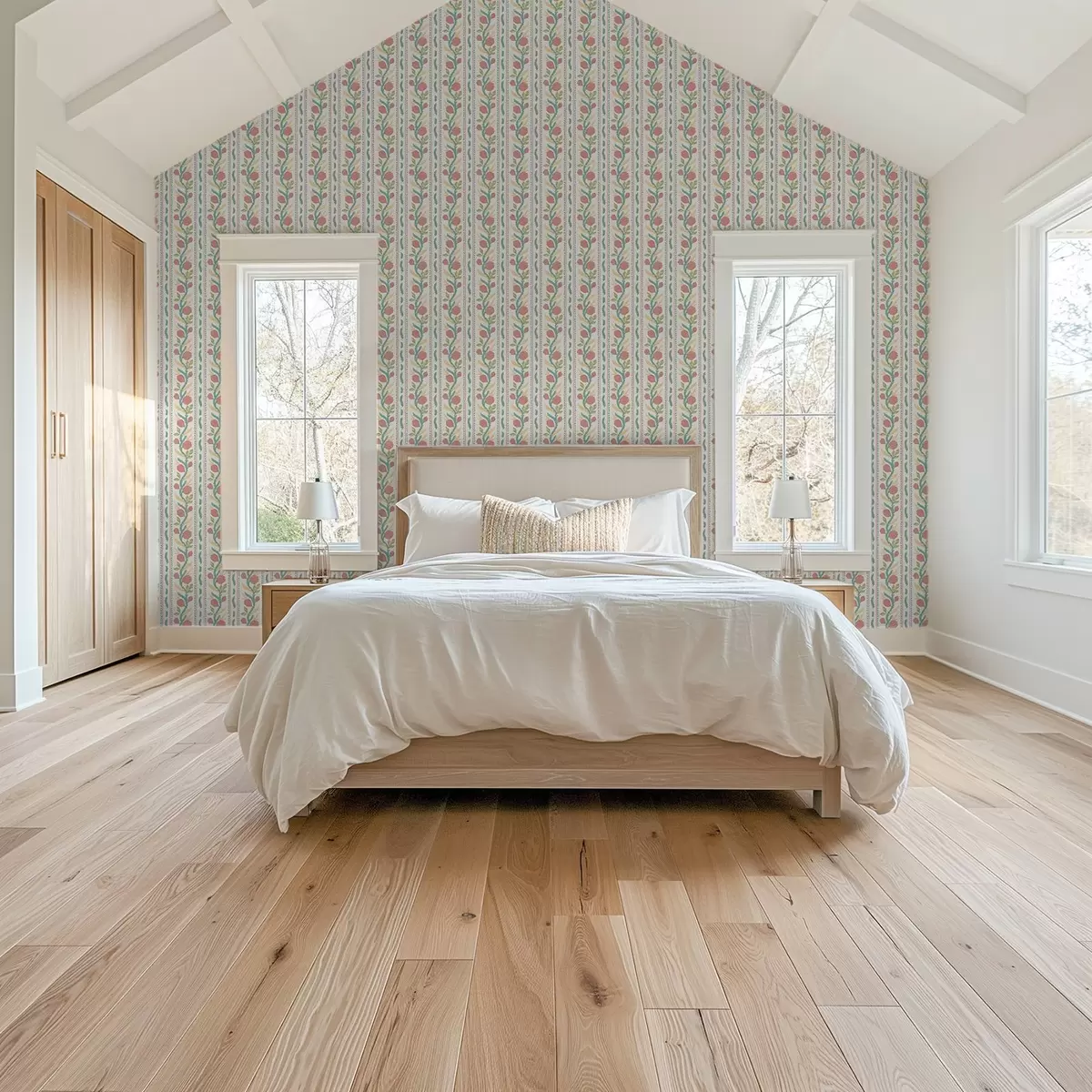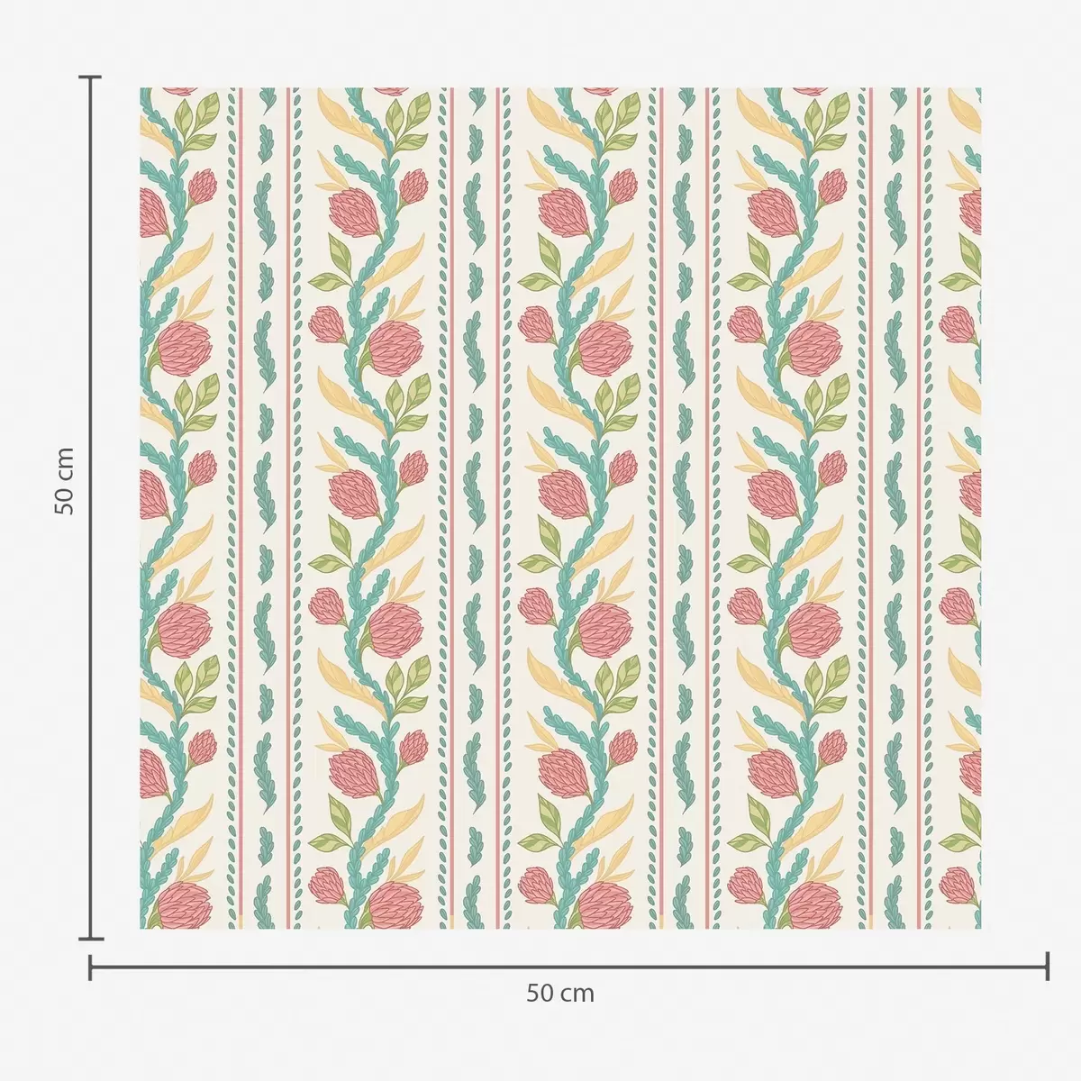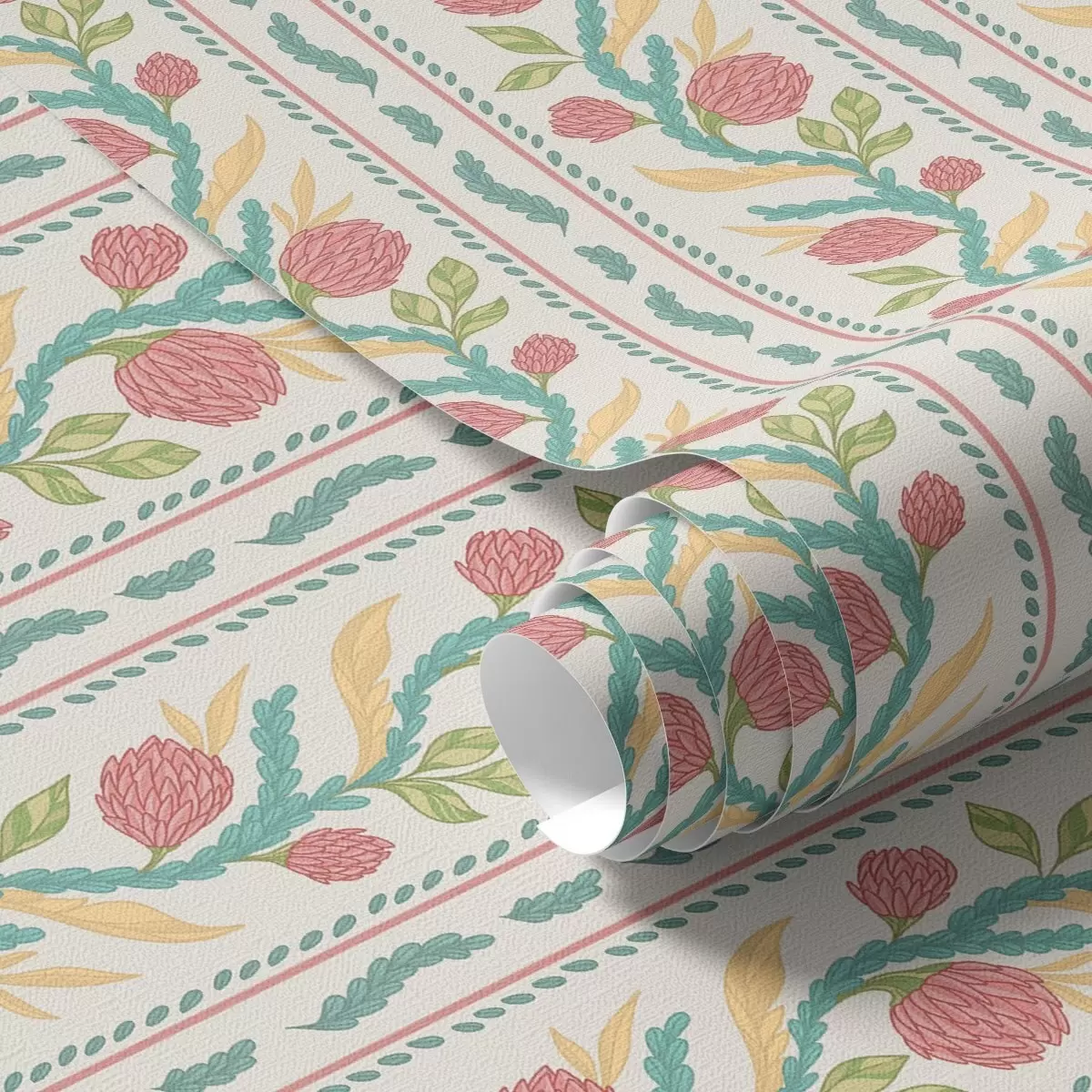 Ταπετσαρία Ρίγες με κοραλλένια μπουμπούκια σε ανοιχτό κρεμ φόντο Nr. a00816v1