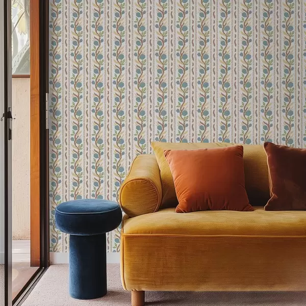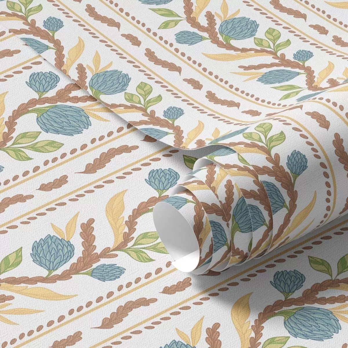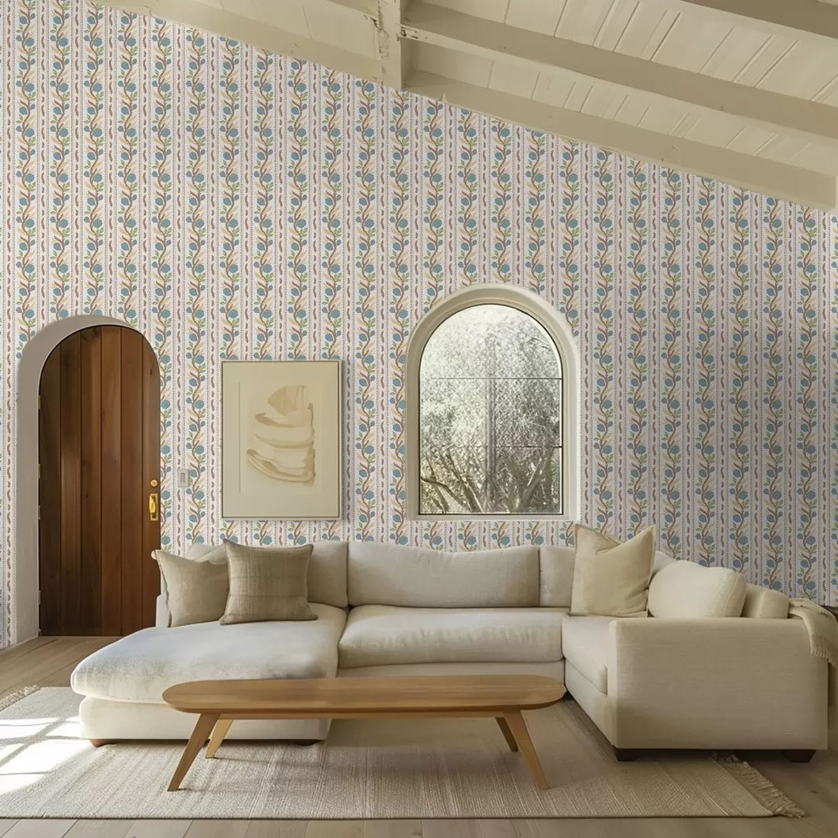 Ταπετσαρία Κάθετες ρίγες με μπλε λουλούδια Nr. a00816v2