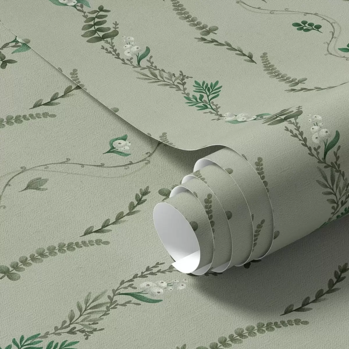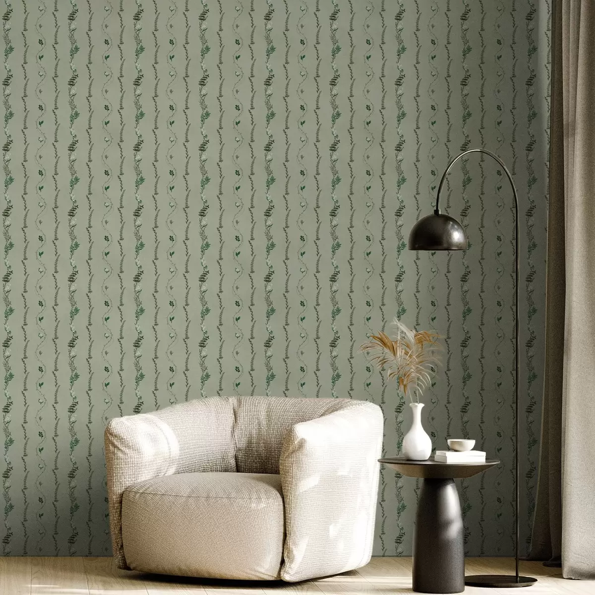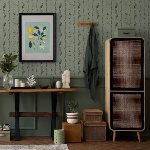 Ταπετσαρία Κάθετα κλήματα και κλαδιά σε απαλό πράσινο χρώμα Nr. a00817v1