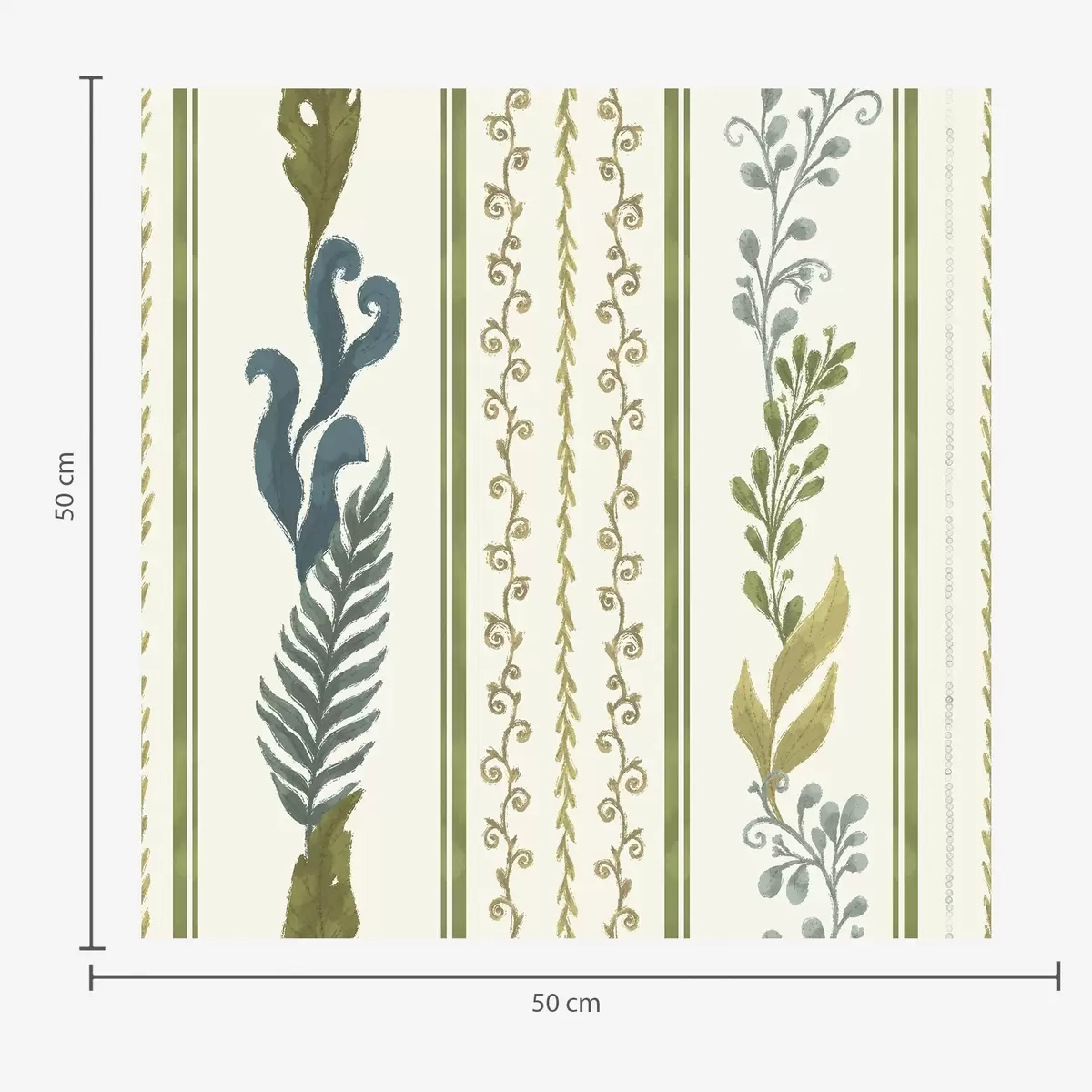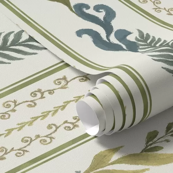 Ταπετσαρία Ρίγες με διακοσμητικά σπειροειδή μοτίβα και μεγάλα κλαδιά σε αποχρώσεις του πράσιν Nr. a00823