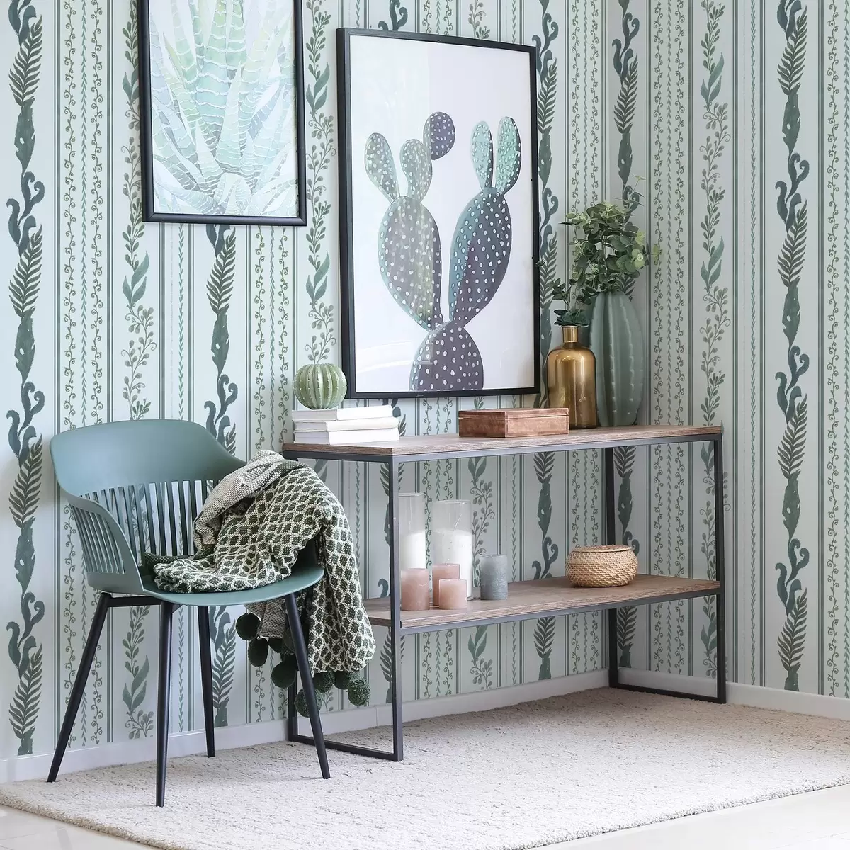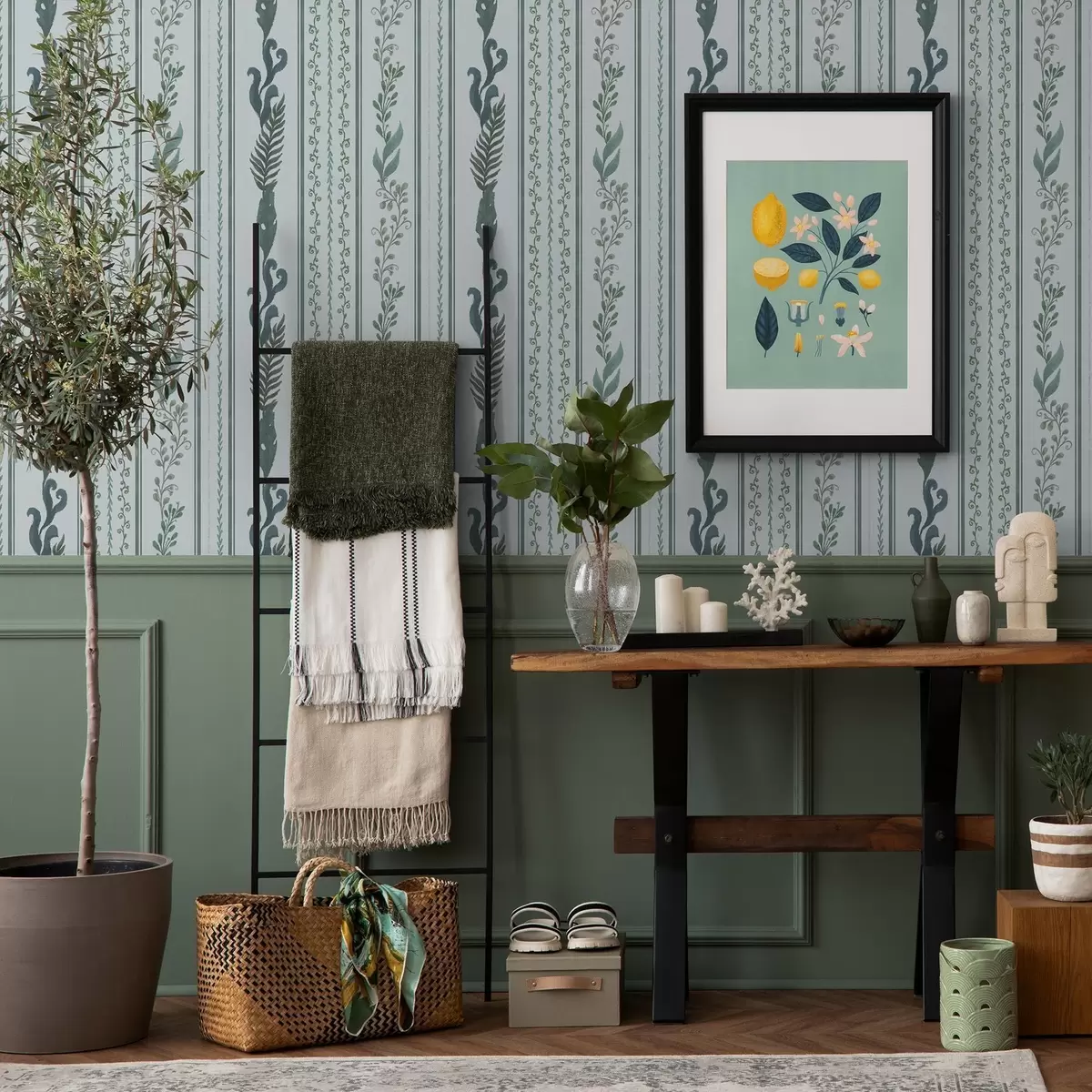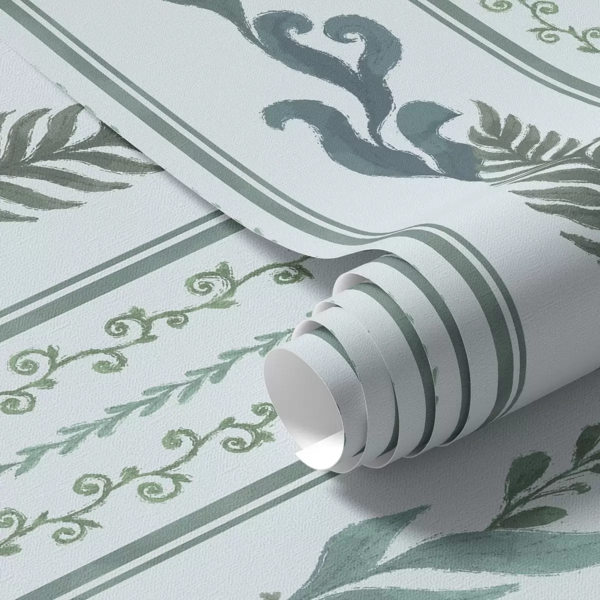 Ταπετσαρία Ρίγες με κλαδιά και μπούκλες σε δροσερό γαλάζιο χρώμα Nr. a00823v1