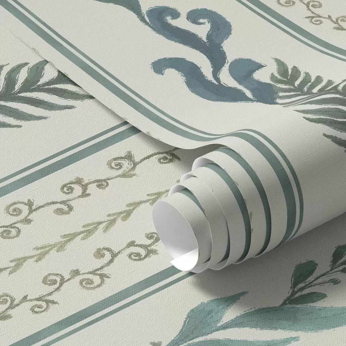 Ταπετσαρία Ρίγες με κλαδιά και μπούκλες σε ζεστό γαλακτώδες φόντο Nr. a00823v2
