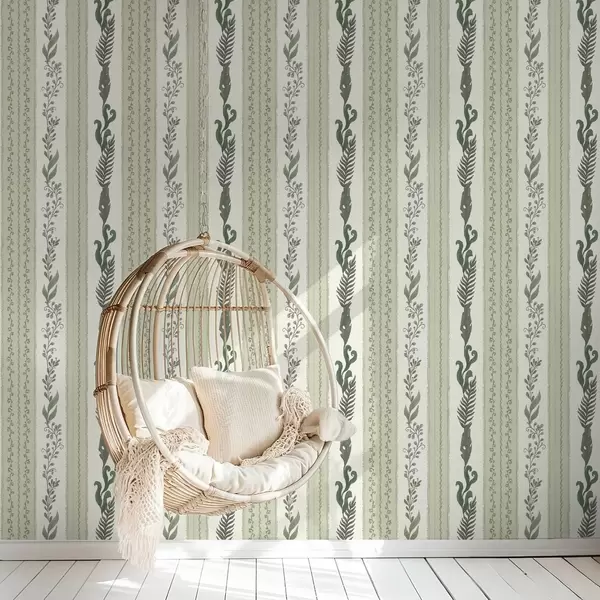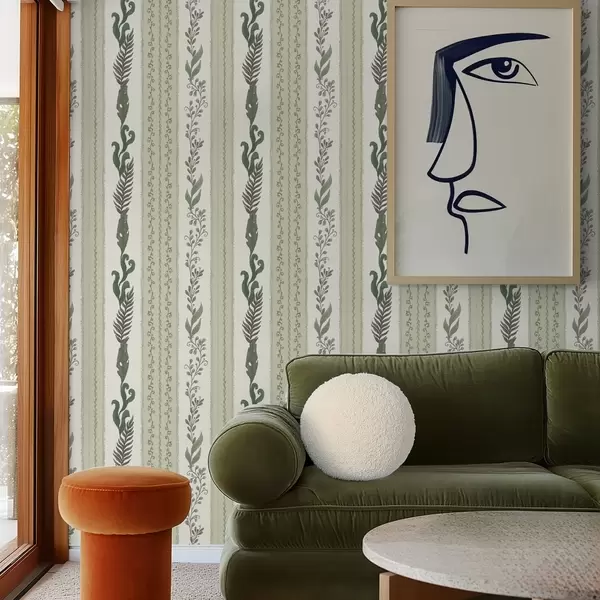 Ταπετσαρία Ρίγες με κλαδιά σε αποχρώσεις του πράσινου και του γκρι, απαλή αντίθεση Nr. a00824