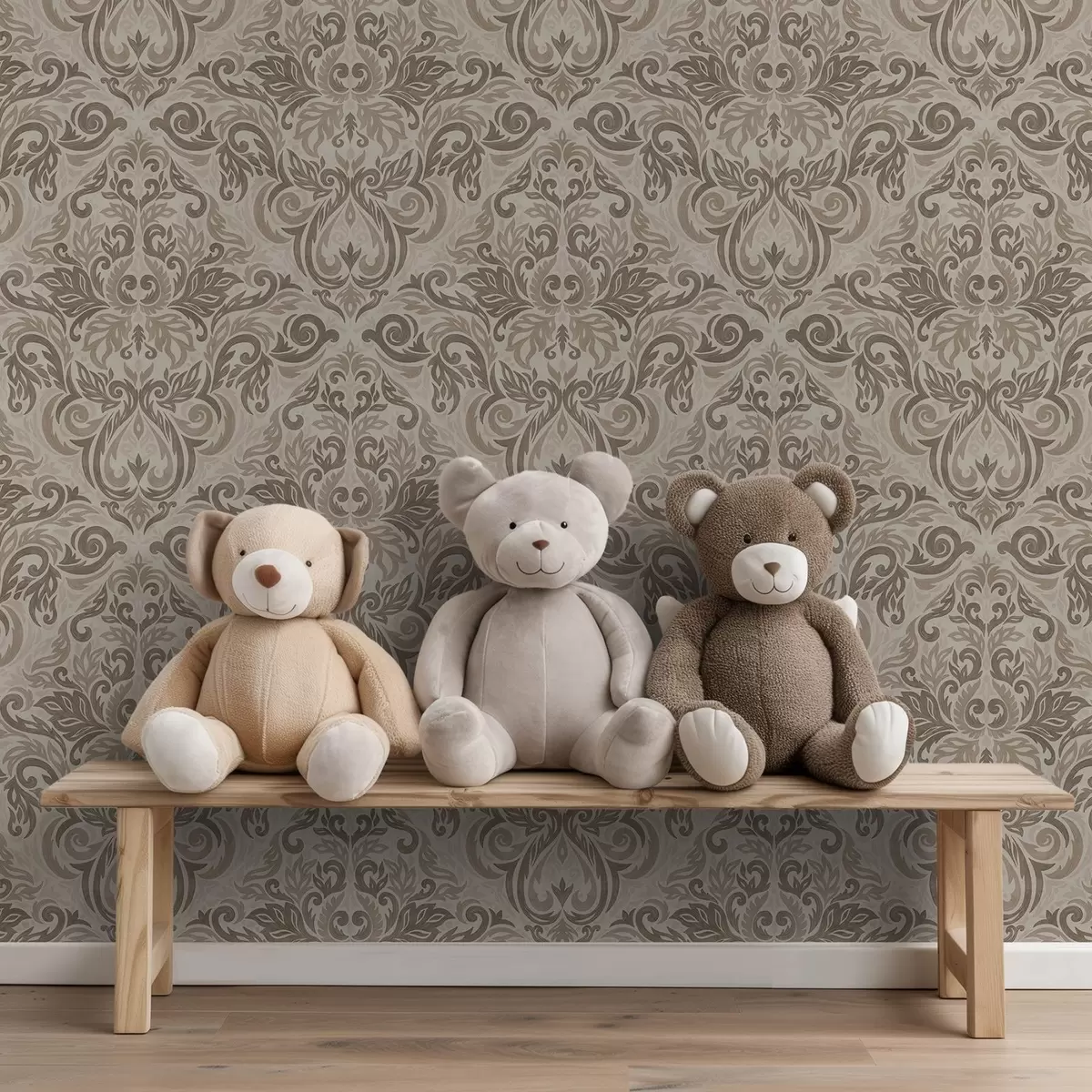 Ταπετσαρία Δαμασκηνό σε ζεστούς γκρι-καφέ τόνους σε ανοιχτό φόντο Nr. a00826v3