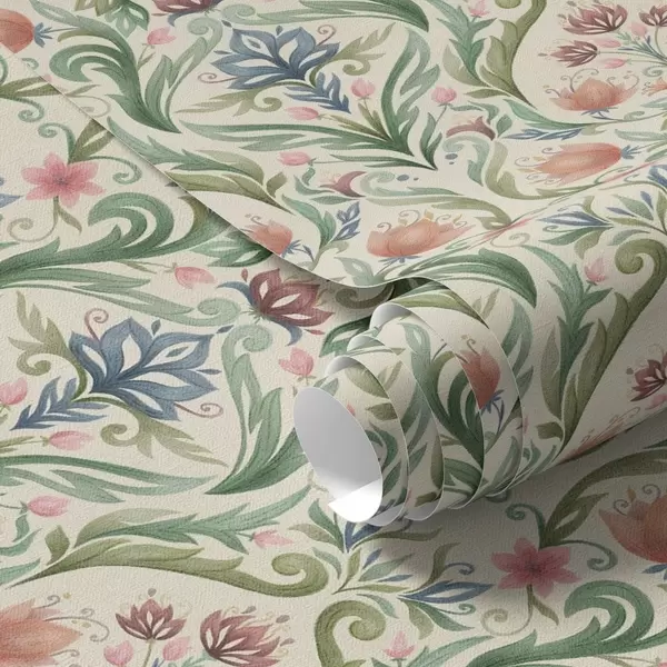 Ταπετσαρία Συμμετρικό floral μοτίβο, τερακότα και πράσινο Nr. a00827