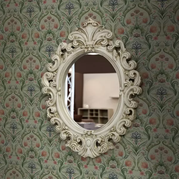 Ταπετσαρία Συμμετρικό floral μοτίβο, παλέτα χρωμάτων μέντας-κρέμας Nr. a00827v1