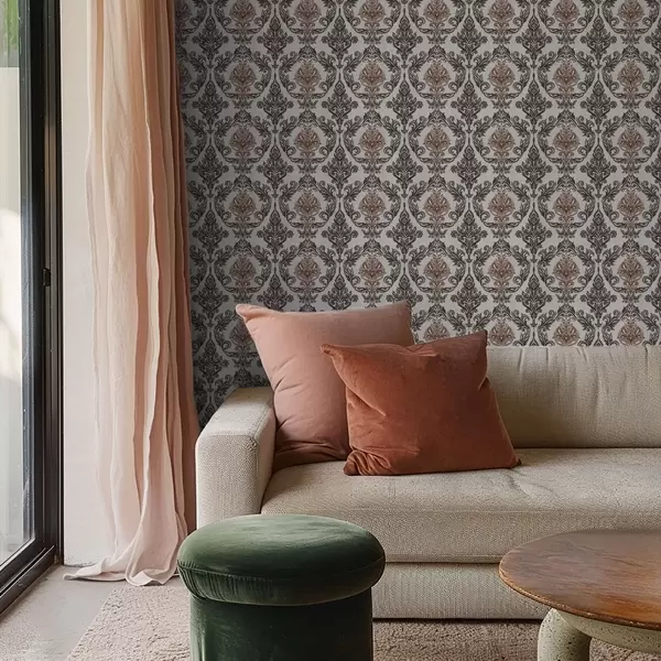 Ταπετσαρία Δαμασκηνό με χάλκινα-καφέ αποχρώσεις σε ανοιχτό φόντο Nr. a00828v4