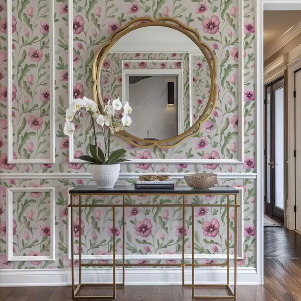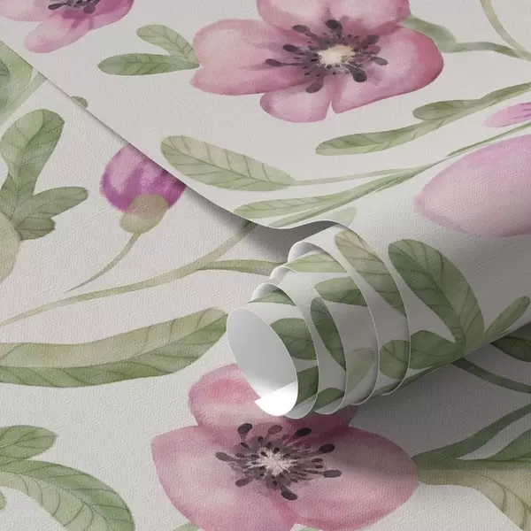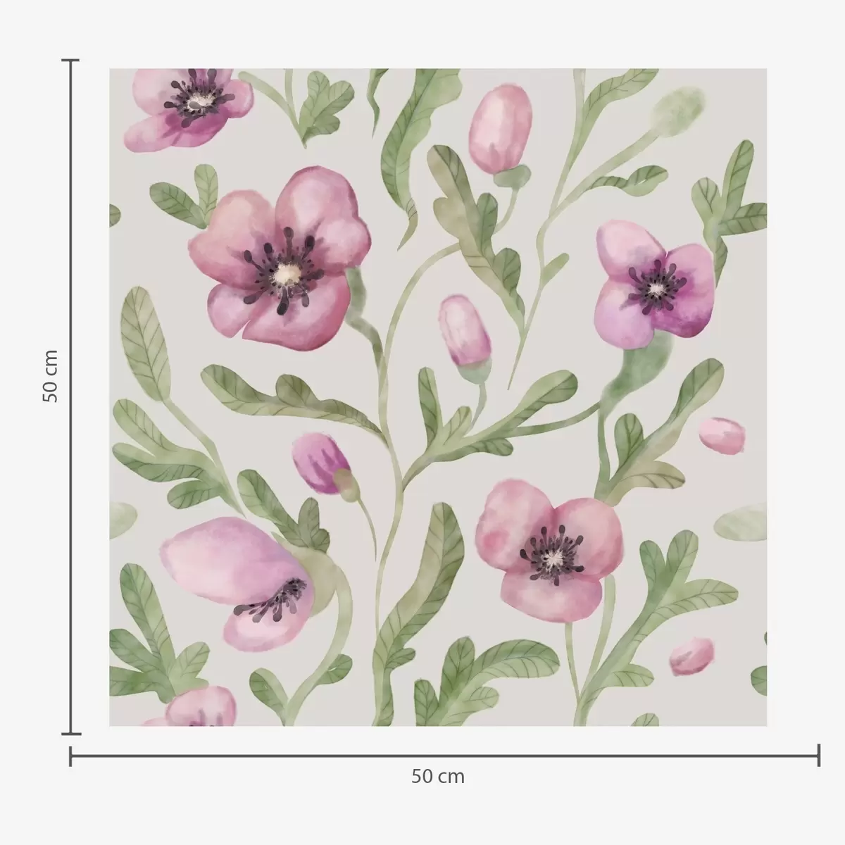 Ταπετσαρία Λεπτές ροζ παπαρούνες με φύλλα σε τεχνική ακουαρέλας Nr. a00830