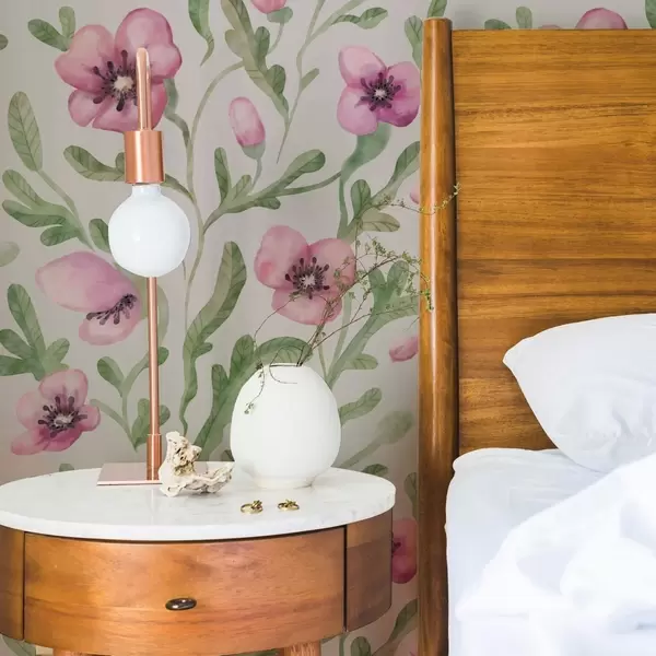 Ταπετσαρία Λεπτές ροζ παπαρούνες με φύλλα σε τεχνική ακουαρέλας Nr. a00830
