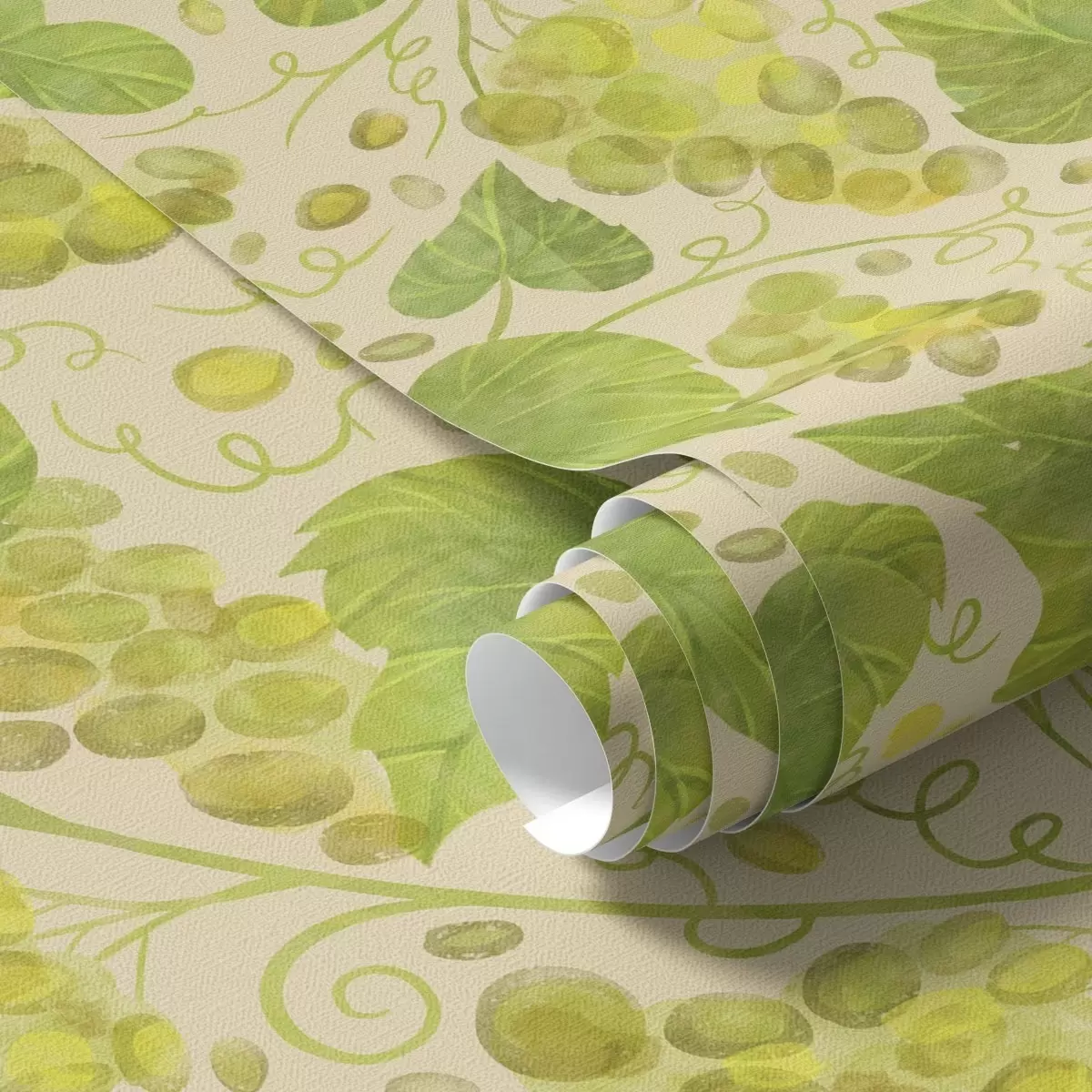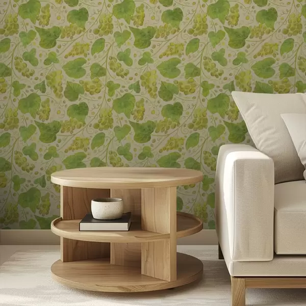 Ταπετσαρία Σταφύλια και πράσινα φύλλα σε ανοιχτόχρωμο φόντο Nr. a00834