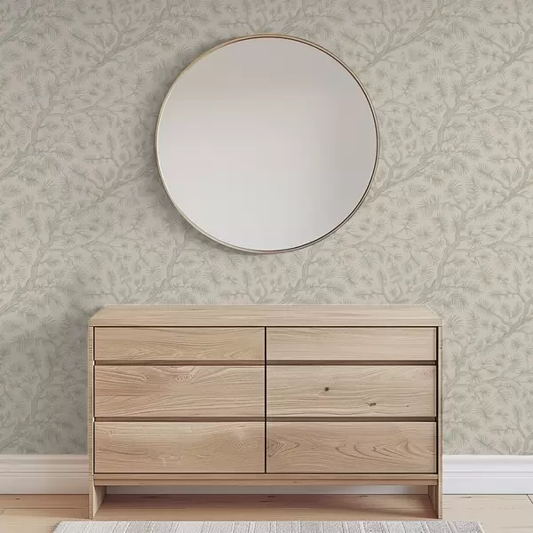 Ταπετσαρία Κλαδιά πεύκου σε ανοιχτό πράσινο χρώμα σε μπεζ φόντο Nr. a00838v1