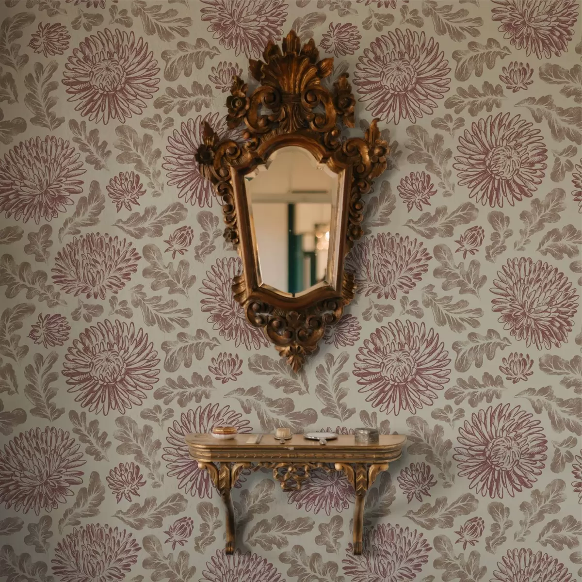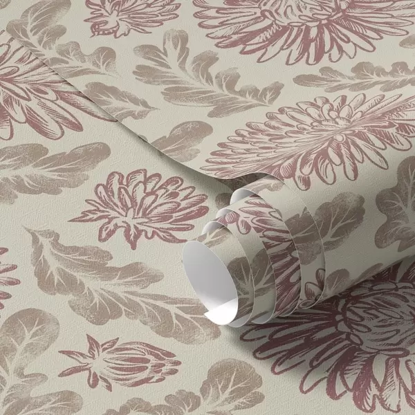 Ταπετσαρία Χρυσάνθεμα με πινελιές κρασιού σε κρεμ χρώμα Nr. a00840v1