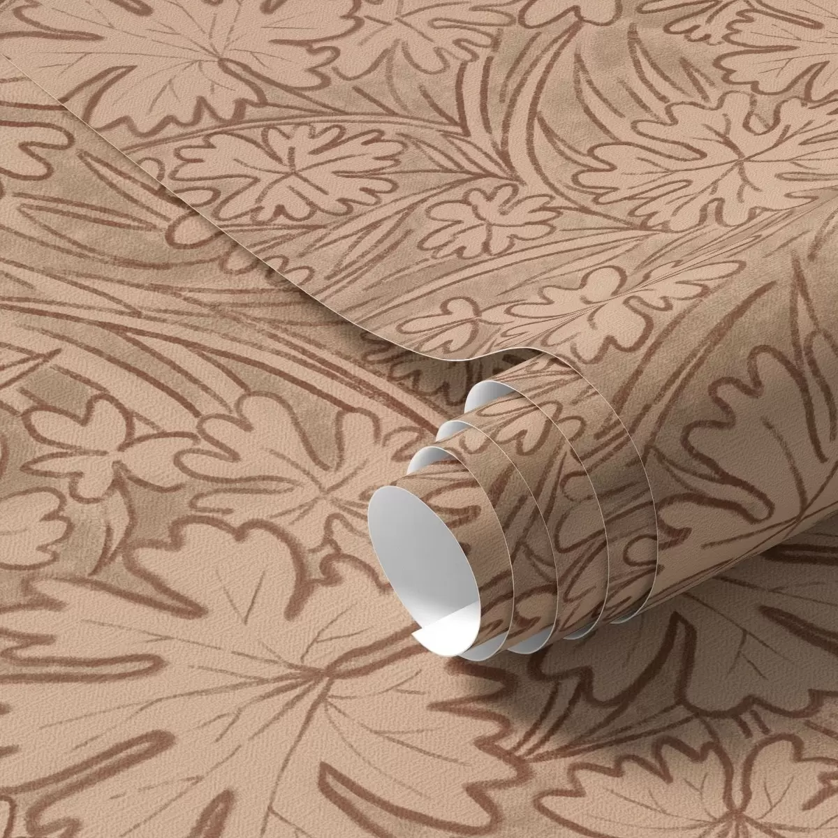 Ταπετσαρία Φύλλα και χόρτα σε παλέτα χρωμάτων από τερακότα-μπεζ Nr. a00847