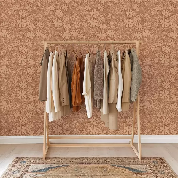 Ταπετσαρία Φύλλα και χόρτα σε παλέτα χρωμάτων από τερακότα-μπεζ Nr. a00847