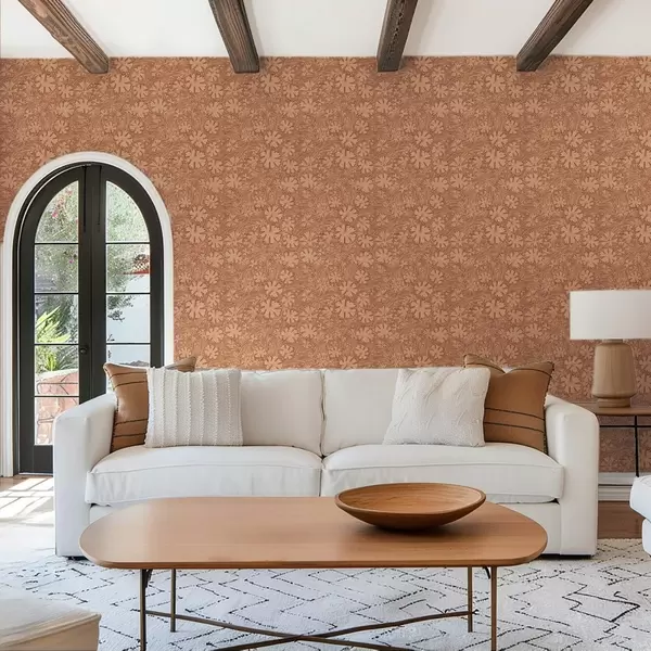 Ταπετσαρία Φύλλα και χόρτα σε παλέτα χρωμάτων από τερακότα-μπεζ Nr. a00847