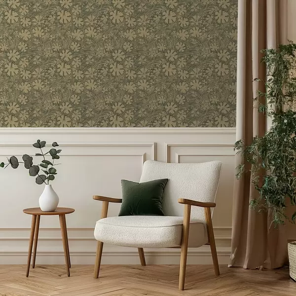Ταπετσαρία Φύλλα και χόρτα σε αποχρώσεις του γκρι-ελιάς Nr. a00847v1