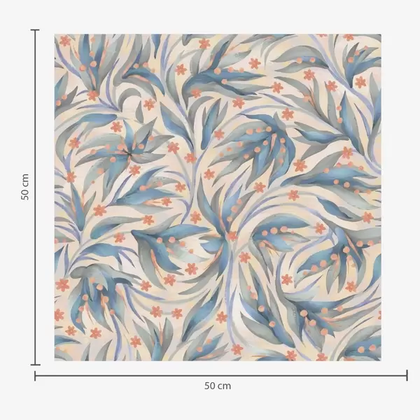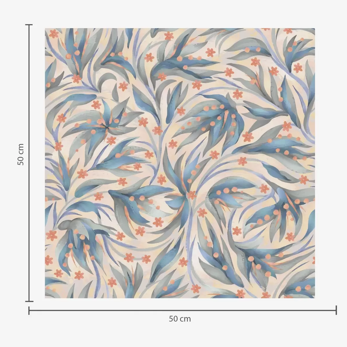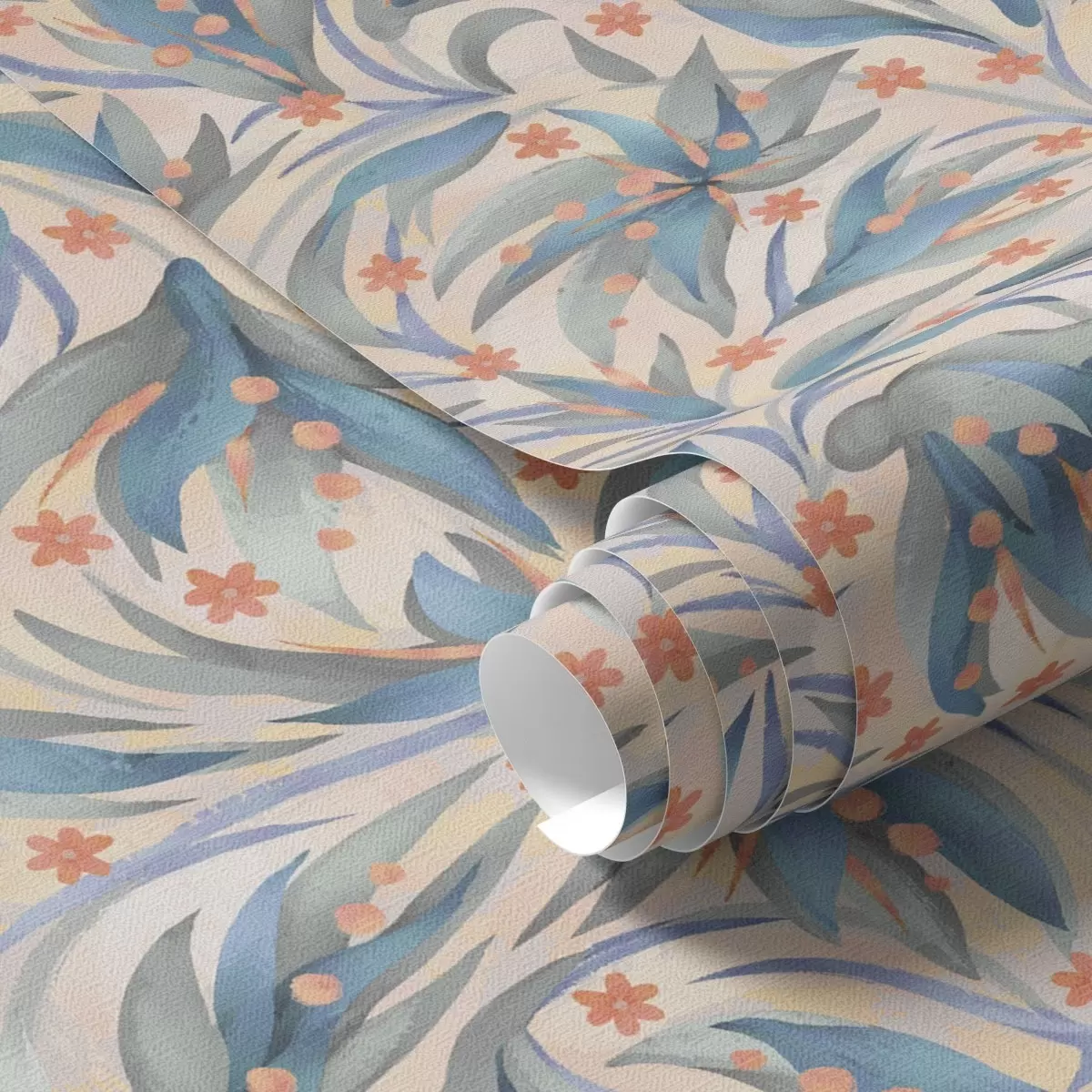 Ταπετσαρία Αφηρημένο μπλε φύλλωμα με κοραλλένια λουλούδια Nr. a00852