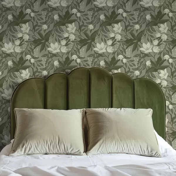 Ταπετσαρία Ανοιχτόχρωμα κρίνα και φύλλωμα σε γκρι-ελαιόχρωμο φόντο Nr. a00854