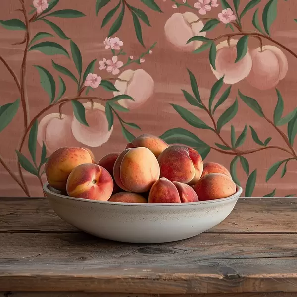 Ταπετσαρία Ροδάκινα σε κλαδιά με ροζ άνθη, τερακότα έδαφος Nr. a00856