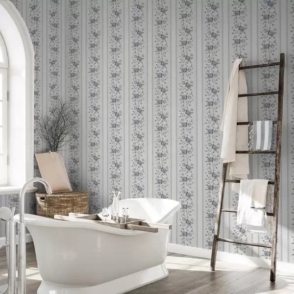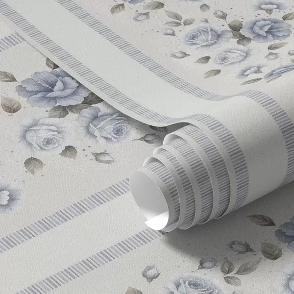 Ταπετσαρία Μπλε τριαντάφυλλα σε κάθετες λωρίδες σε ανοιχτόχρωμο φόντο Nr. a00860