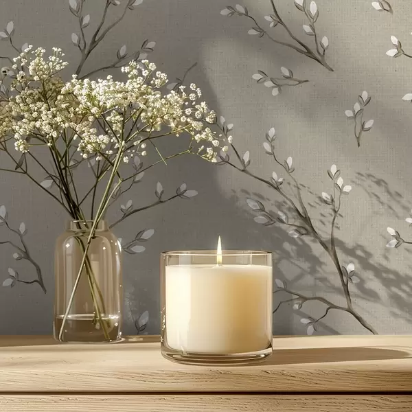 Ταπετσαρία Κλαδιά με λευκά μπουμπούκια σε φόντο λινό ταύπ Nr. a00861