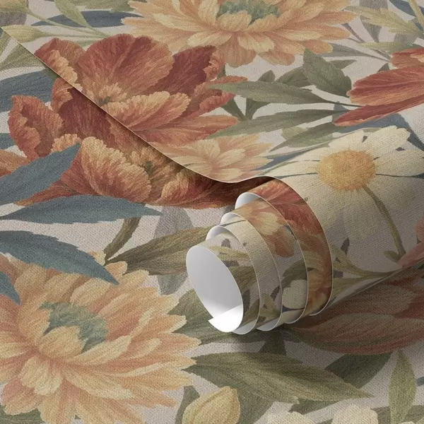 Ταπετσαρία Vintage κήπος ανθίζει σε ζεστά χρώματα τερακότα και ροδάκινο Nr. a00874